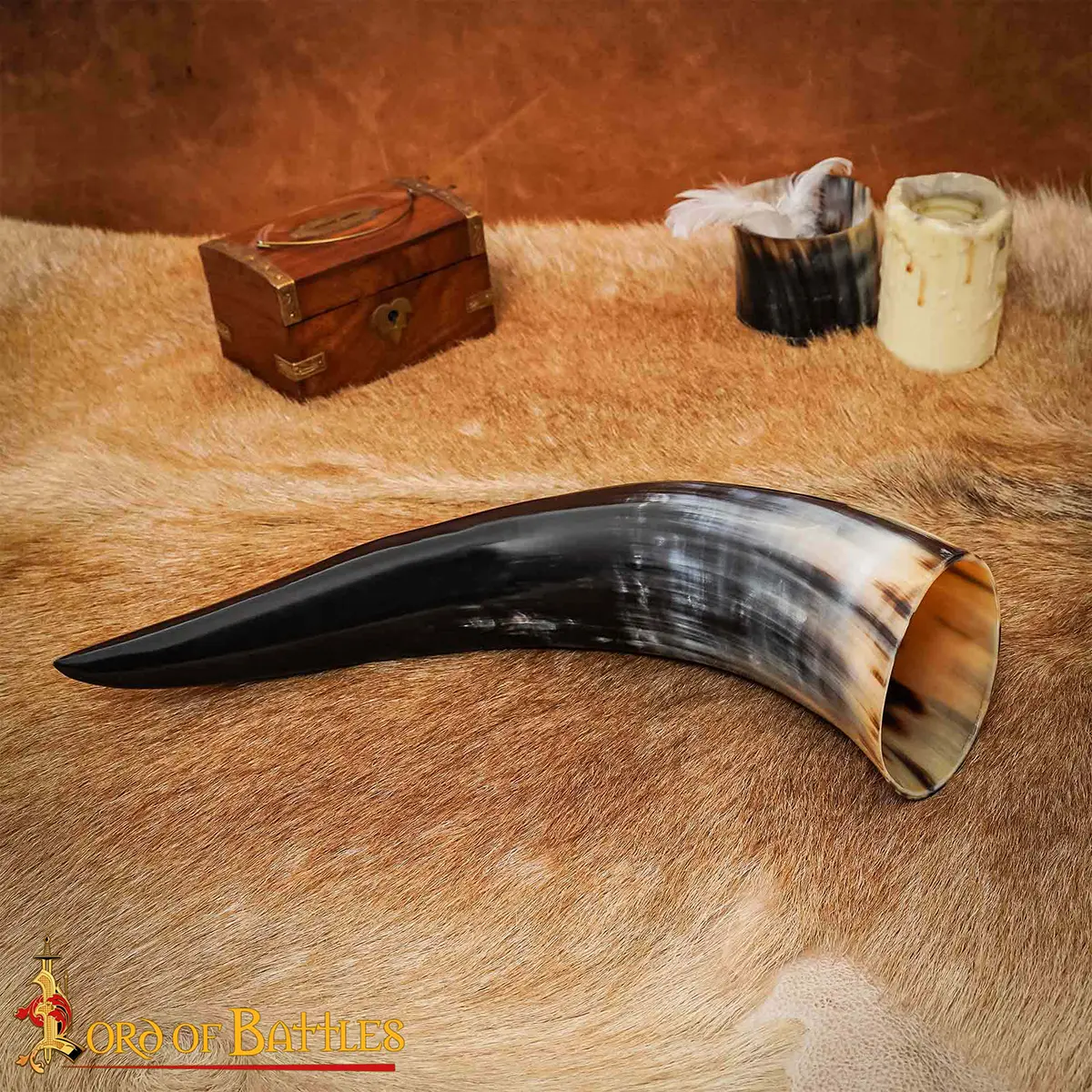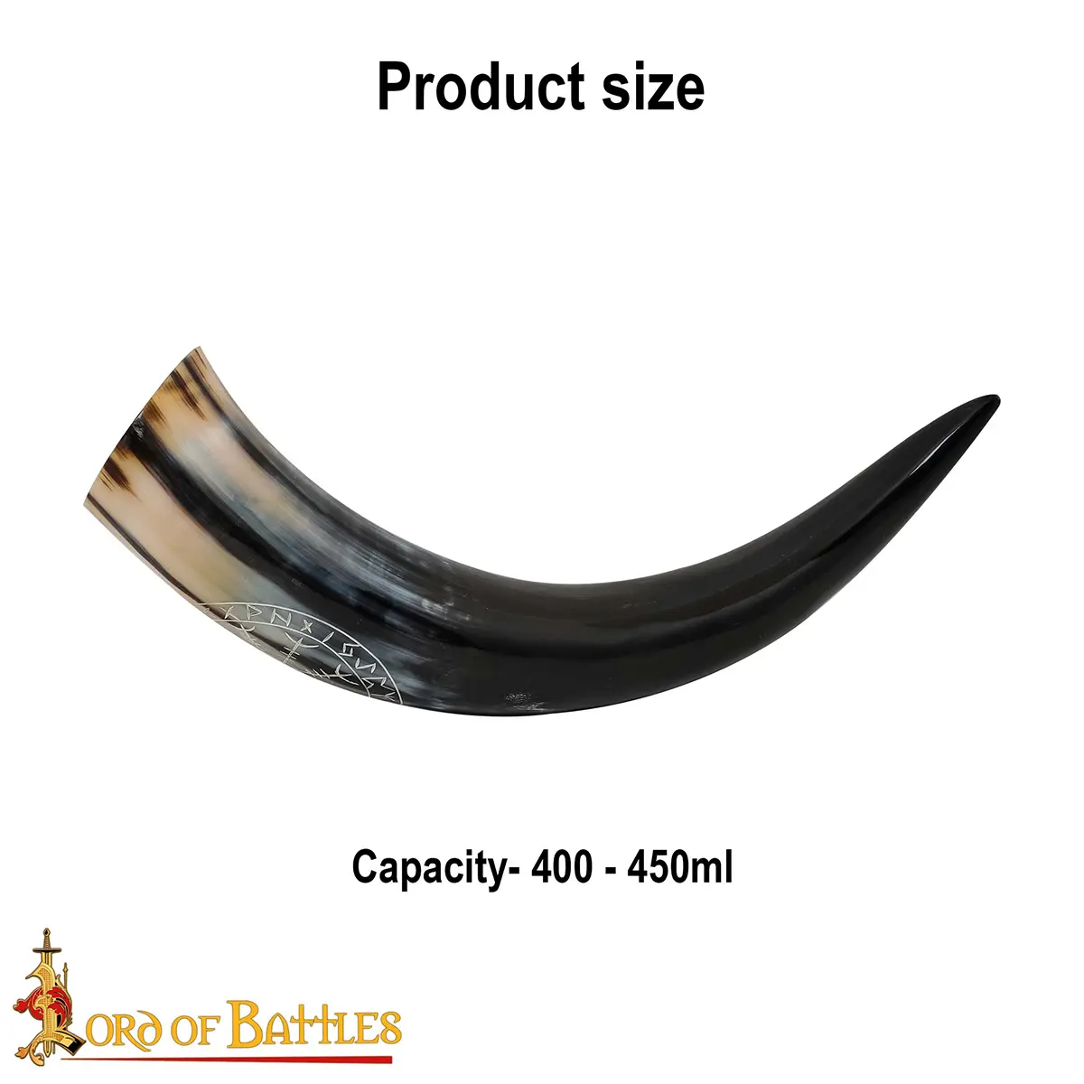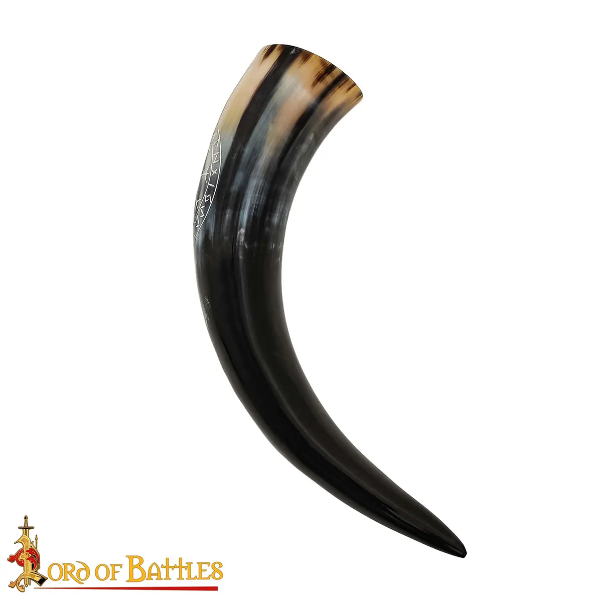 Genuine Drinking Horn with Hand-Carved Aegishjalmur / Helm of Awe Motif