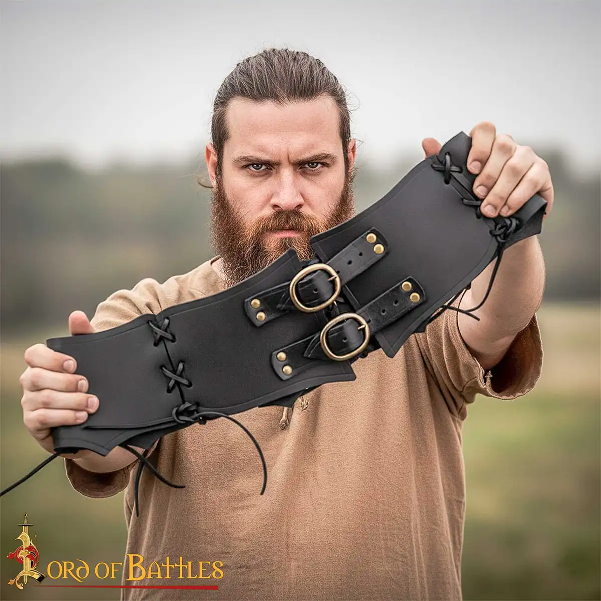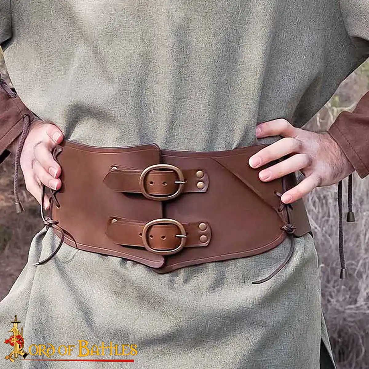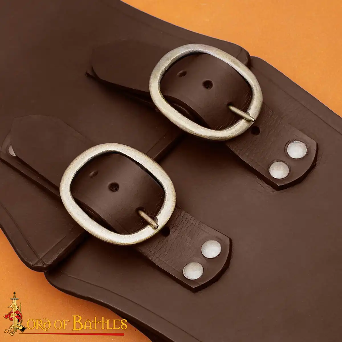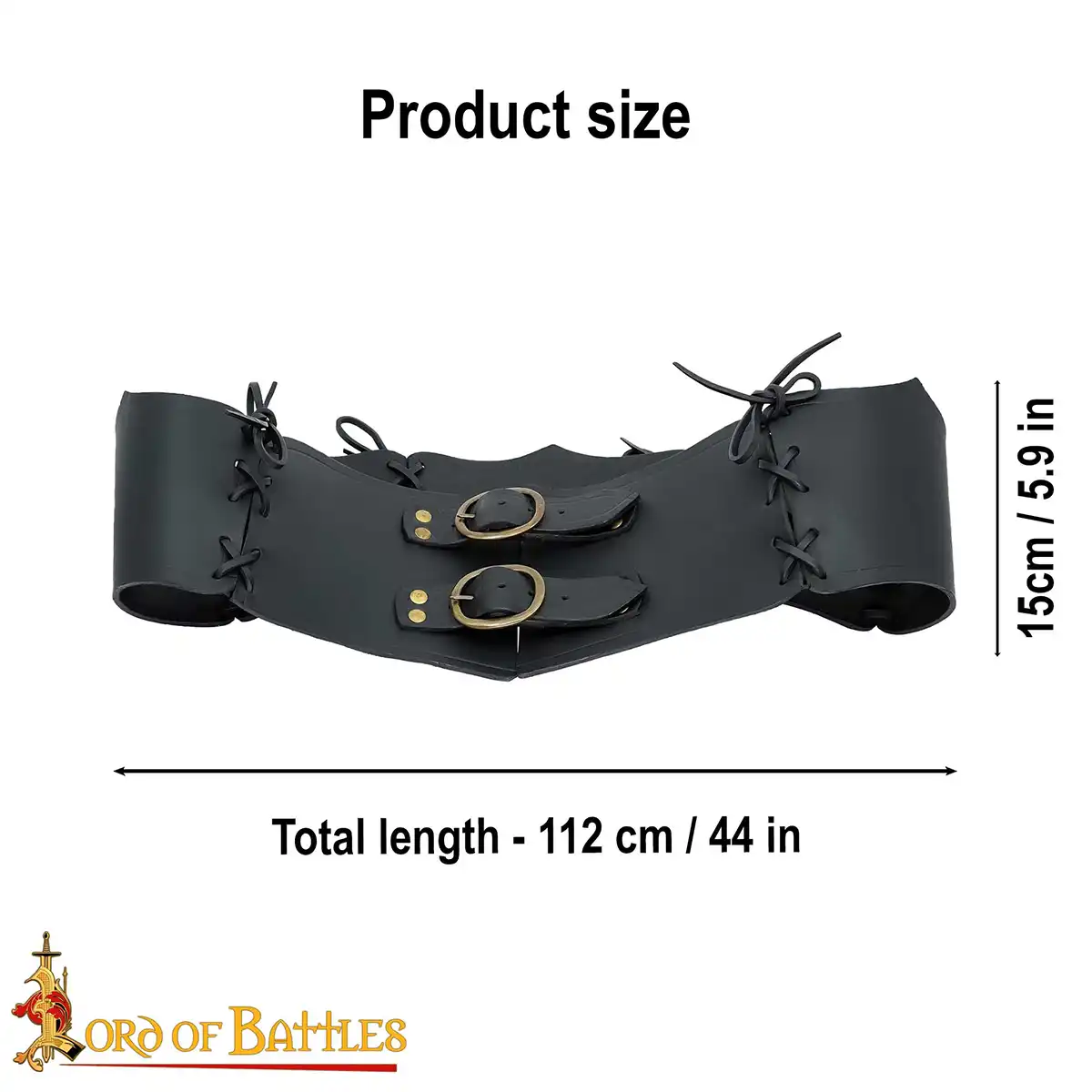 The belt has two oval antique brass buckles at the front, reinforced with matching brass rivets for longevity. These buckles are both functional and decorative, giving a noble and battle-ready look inspired by historical warrior belts. Adjustable front straps allow you to achieve a secure and personalised fit with ease.