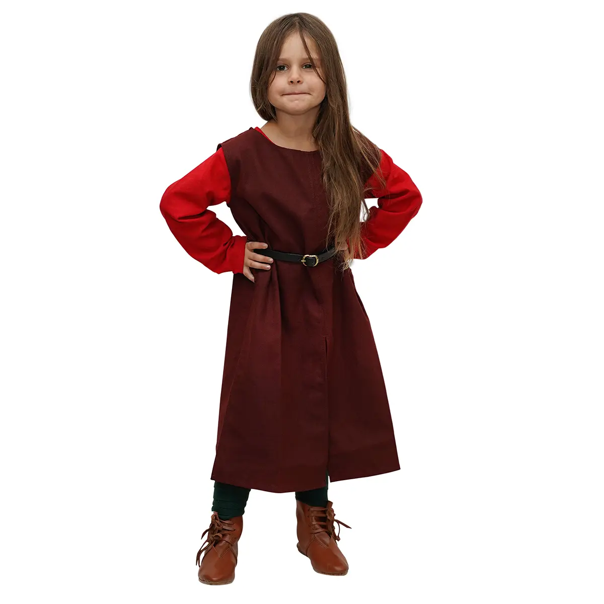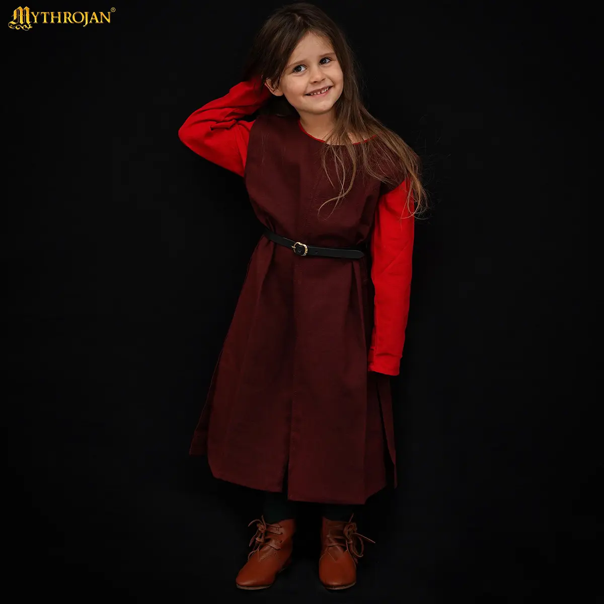 The loose, sleeveless fit allows it to be worn easily over tunics, chainmail, or gambesons, making it a versatile and practical layer for any medieval ensemble. Its mid-thigh length and clean, finished edges lend it both a refined and rugged look suited for warriors, squires, and nobles.