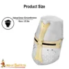Step into the armored legacy of the High Middle Ages with this Brass Crusader Great Helmet, a faithful reproduction of the iconic helm worn by knights during the 12th and 13th centuries. With its barrel shape, minimal eye slits, and fully enclosed structure, this design was made for the brutal realities of Crusader warfare—offering full facial protection against arrows, swords, and harsh sun.