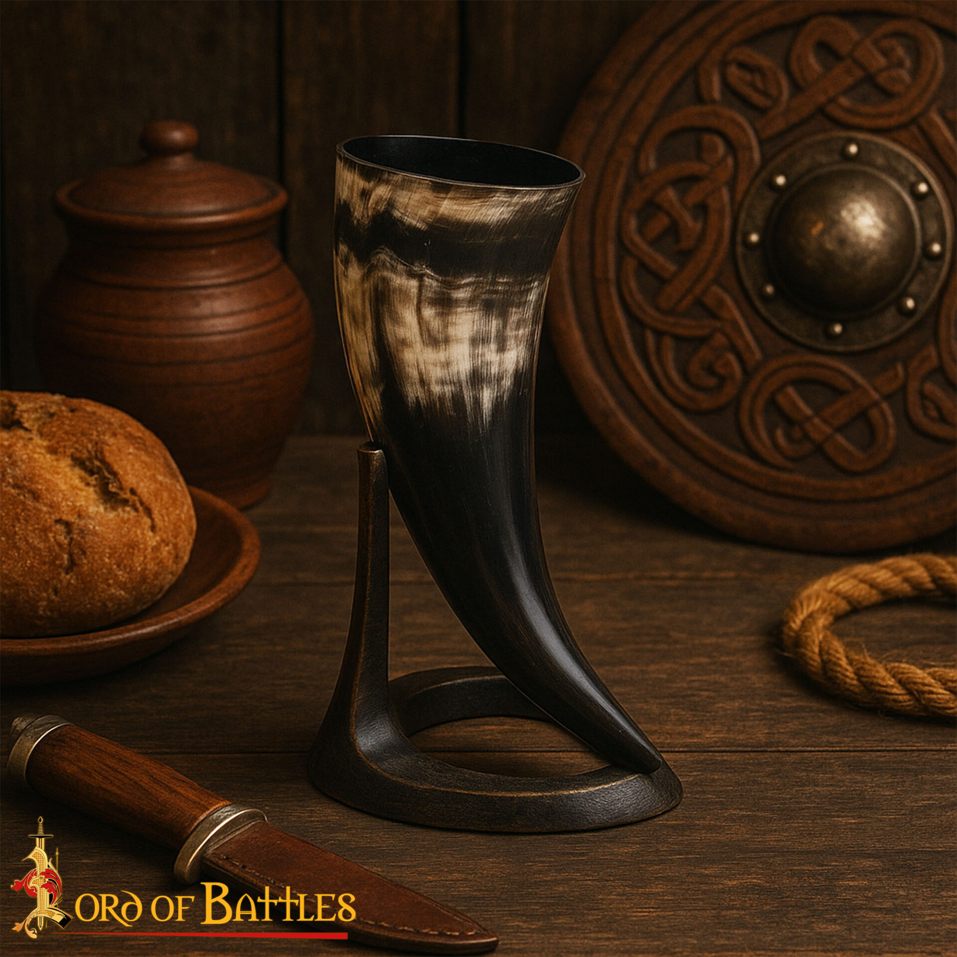 Compact and striking, its 150 ml (5 oz) capacity is ideal for sampling mead, ale, cider, or chilled drinks during feasts, gatherings, or a quiet evening toast. When not in use, it acts as a unique display piece, showcasing heritage charm and authenticity.