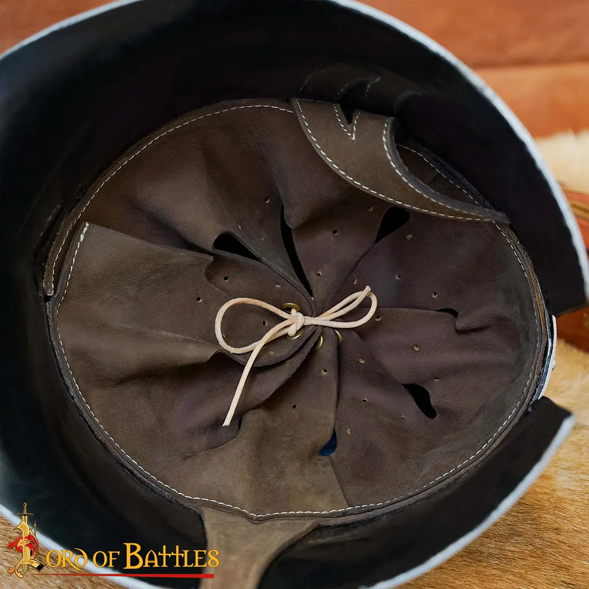 - Our reproduction is handmade from sturdy 16gauge mild steel. A comfortable and secure leather liner acts as a significant shock absorber. The firm leather strap and solid brass buckle (both sold separately too) ensure a perfect closure. It is best suited for historical reenactments and in real-life combat. A 68cm inner circumference makes it ideal for almost all who wish to wear it.