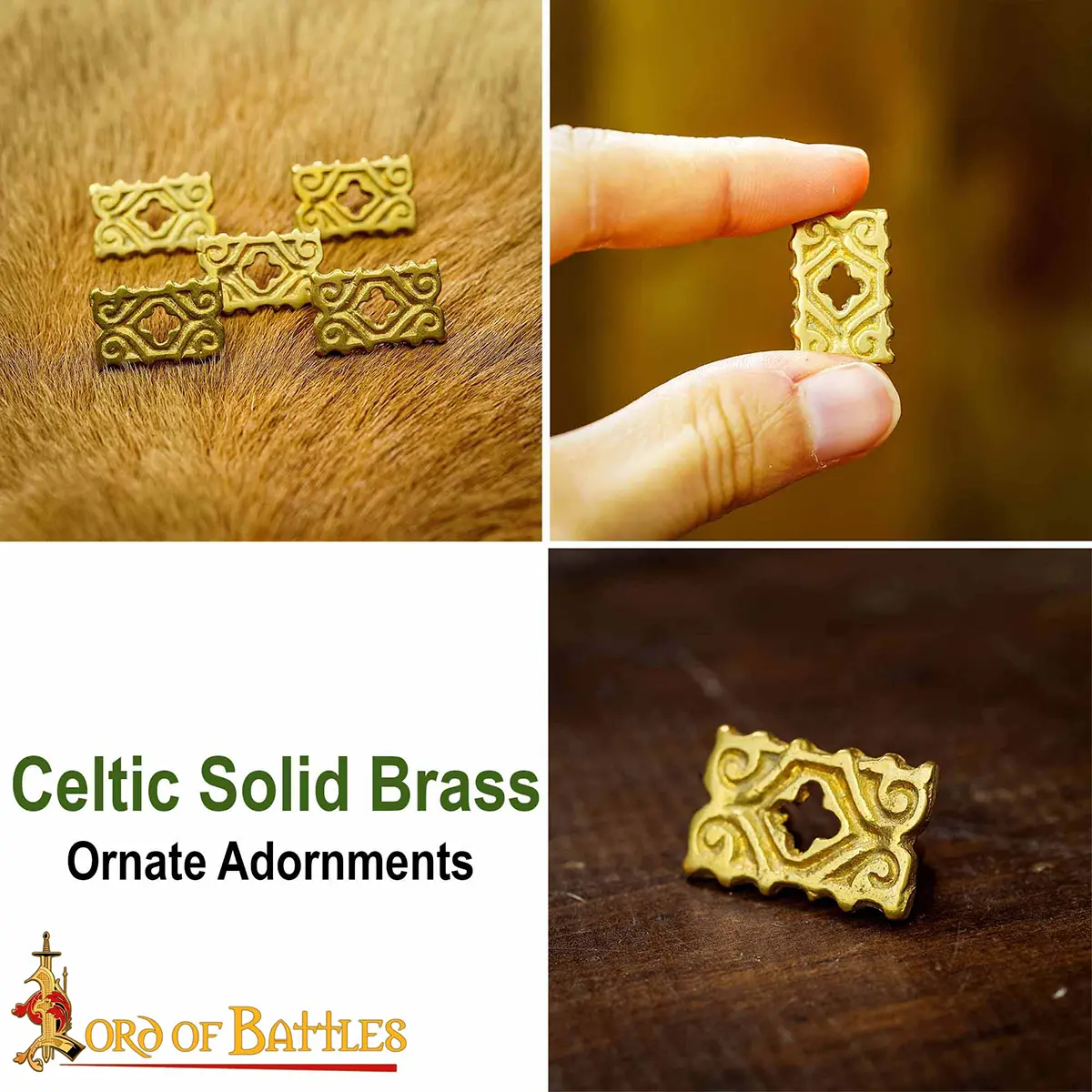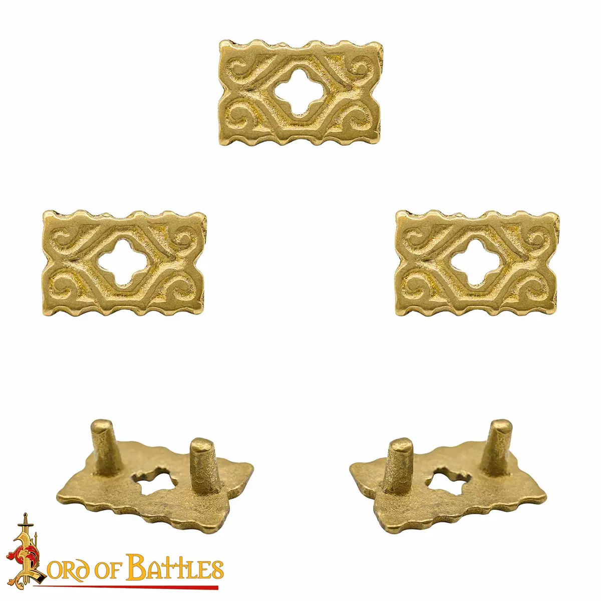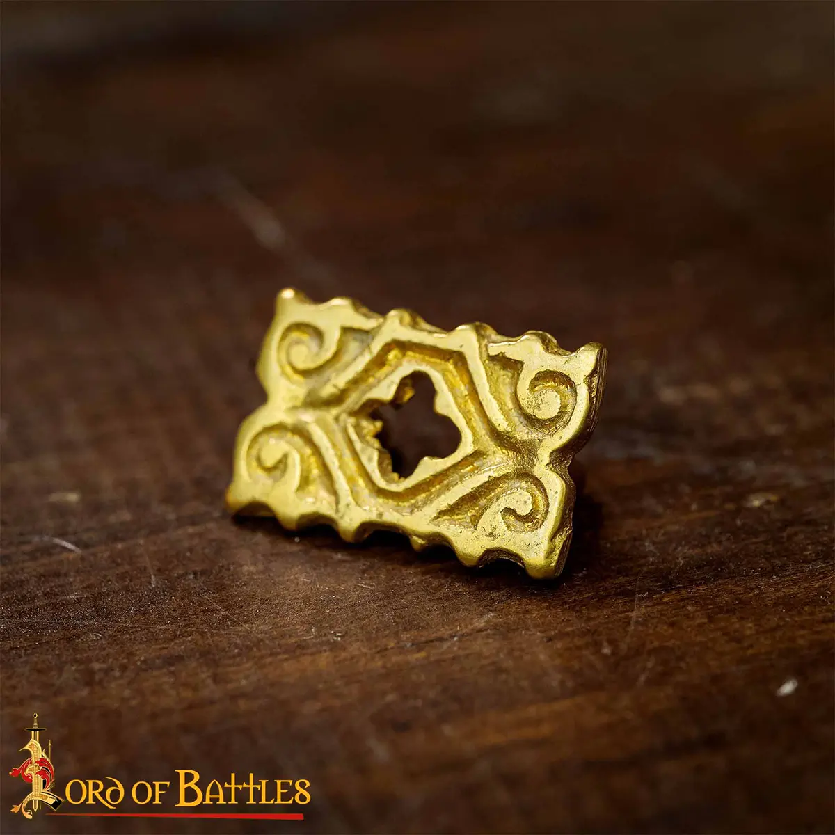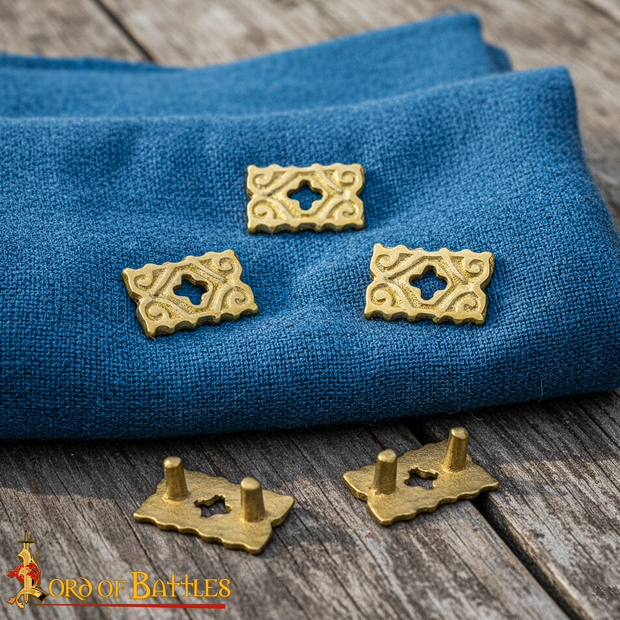 Each medieval decoration mount is made from solid brass, which was very popular in the Middle Ages because it was strong, lightweight and naturally resistant to rust. Brass keeps its shape well and needs very little maintenance. Brass forms a natural patina with time which gives a beautiful dark look.