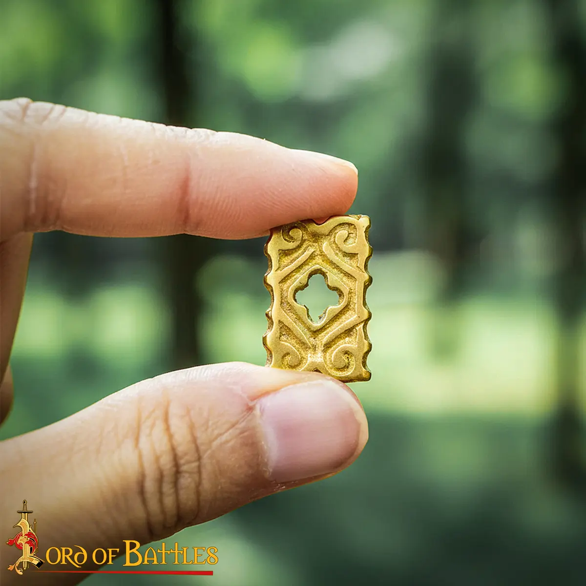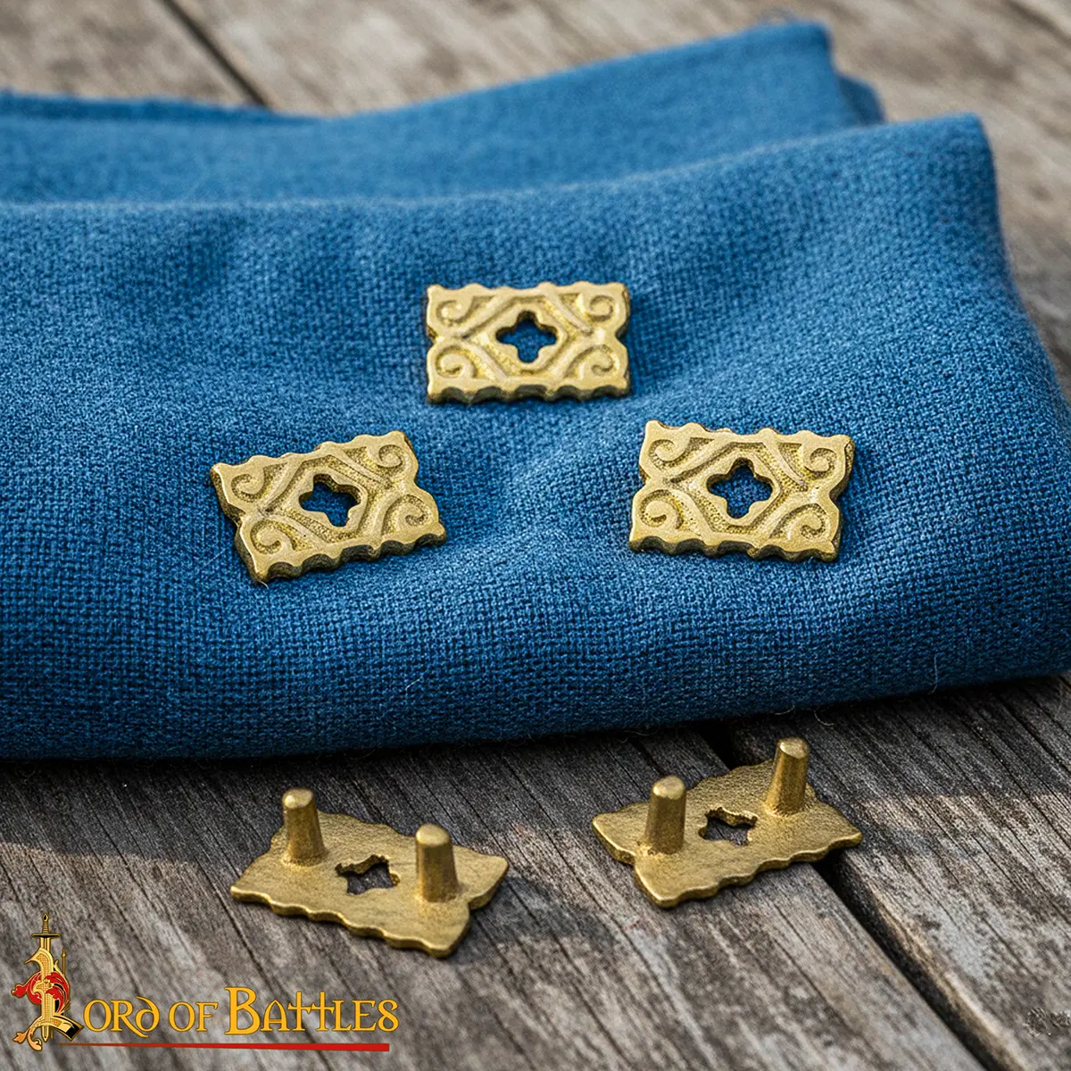 This medieval Quatrefoil belt mount set of 5 is inspired by the original designs of the 15th century from late medieval Europe. The quatrefoil design has four overlapping round lobes which were seen quite often in the Gothic and early Renaissance periods in architecture as well as accessories.