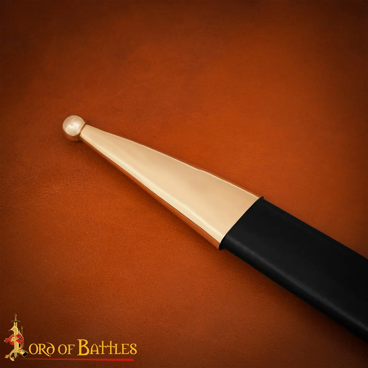 • Genuine leather scabbard, accented with antique-finish brass chape and fittings