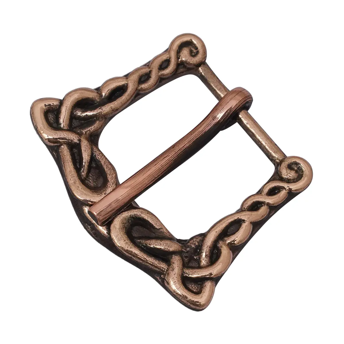 The interlace pattern made from bronze is a big indication of the Viking world. Perfect for leather artisans, or collectors of authentic period gear, this buckle adds a strong historical look to any 2 cm wide belt or strap.