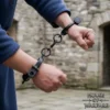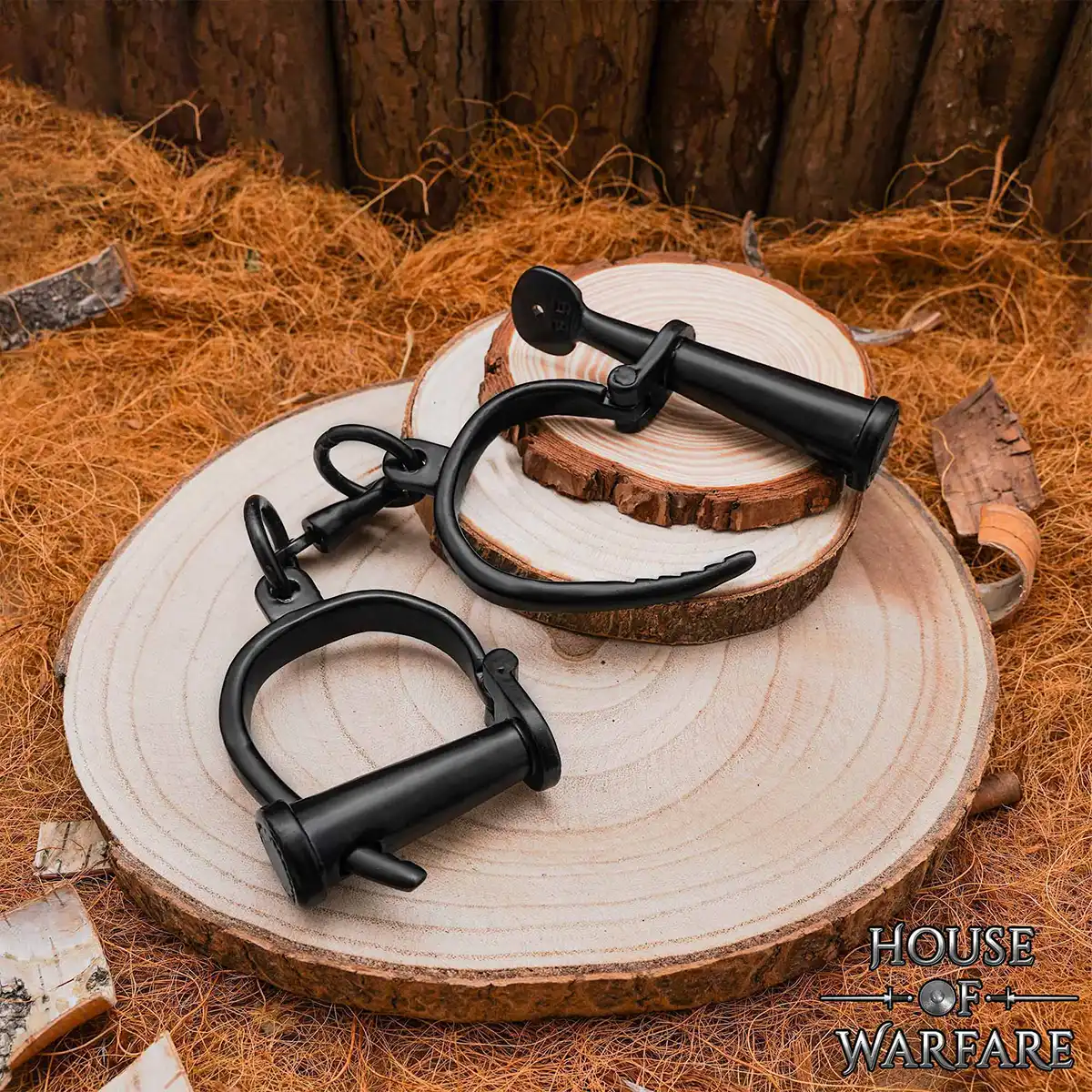These adjustable medieval handcuffs are hand-forged iron, and inspired by historical dungeon restraints which were used in medieval times. Designed to look authentic while being solid and functional, they give a strong visual impact for collectors display, LARP or themed events.