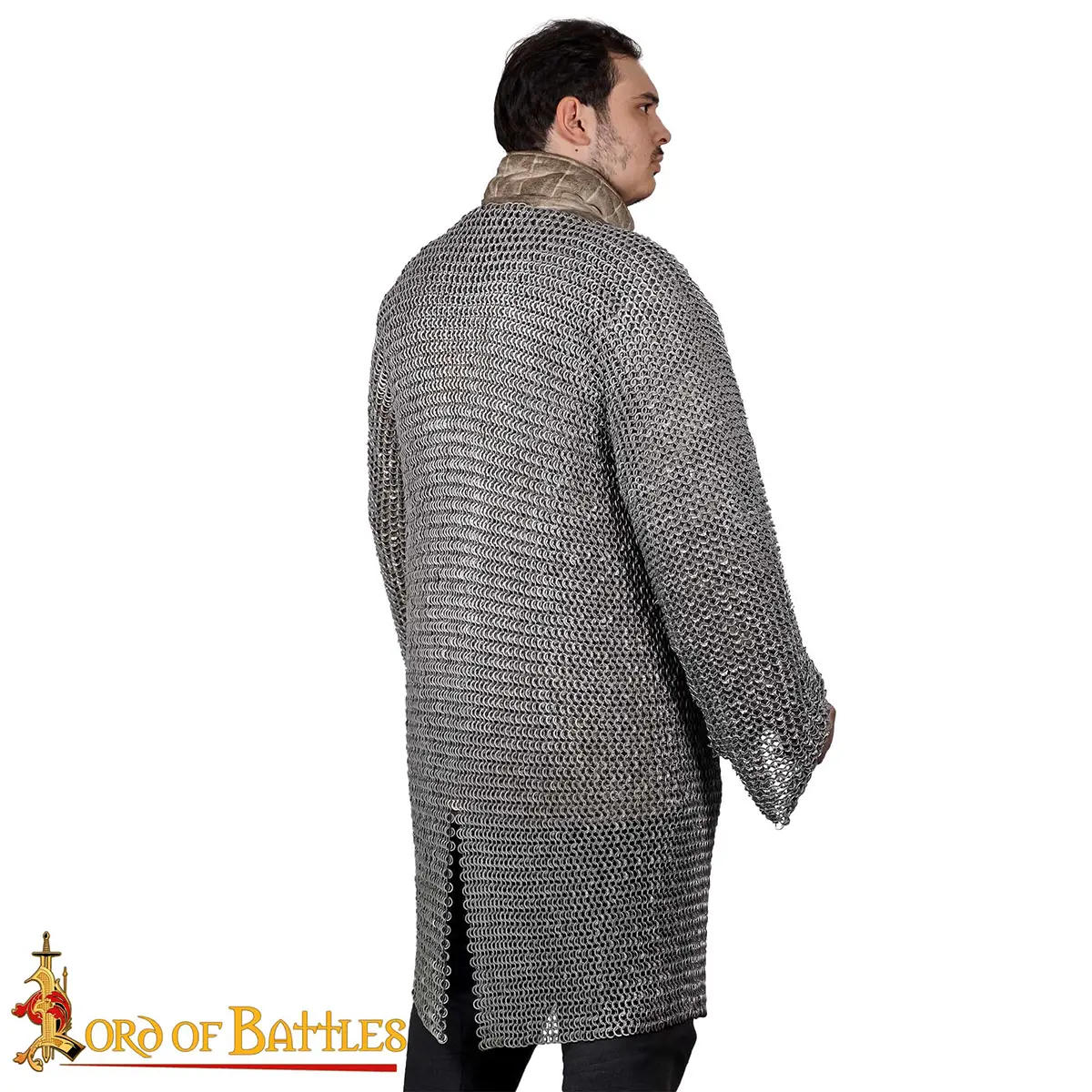 This riveted chainmail hauberk gives a bright, natural silvery finish that resembles steel but is easier to wear for long time. As an aluminium chainmail hauberk, it is made for non-combat and light-duty use, prioritizing comfort, mobility, and appearance.