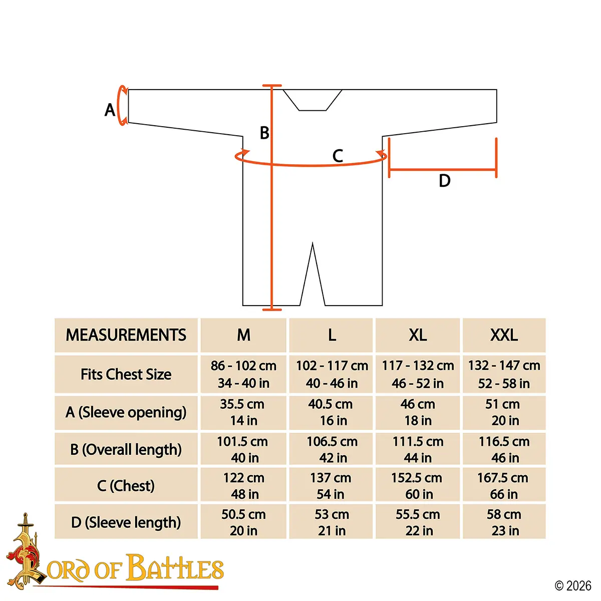This aluminium chainmail shirt is made with 10 mm round rings made from 16-gauge aluminium, with a combination of dome-riveted rings with alternating solid flat rings. This chainmail hauberk has a classic medieval look with lightweight and comfortable wear.