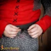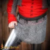 This skirt is made using 10 mm round rings in 16 gauge thickness, in an alternating pattern of dome riveted and flat solid rings. This riveted chainmail construction gives it a strong structure with flexibility. The waistband with adjustable ties helps secure the skirt comfortably around the waist.