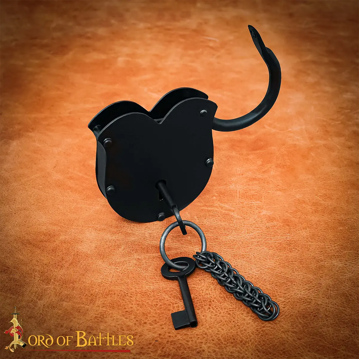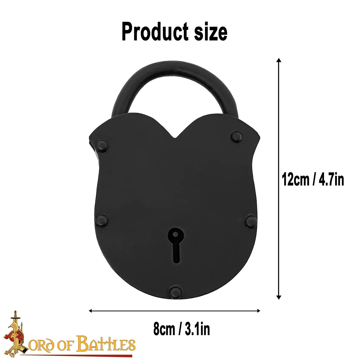Being HAND FORGED from sturdy Iron Padlock, this lock has a raw look. A set of two keys are provided with this lock, attached to a robust butted chainmail keychain. Its total dimensions are (12 X 8) cm. This padlock is ideal for doors, chests, trunks, cases, gates, etc. Note: This product is carefully coated with a layer of oil when packaged that acts as a temporary (protective) layer against corrosion (rust), which can easily be wiped off using any oil remover or even a dry cloth.
