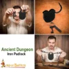 Rugged Medieval Iron Padlock with Chainmail Keychain and Paired Keys
