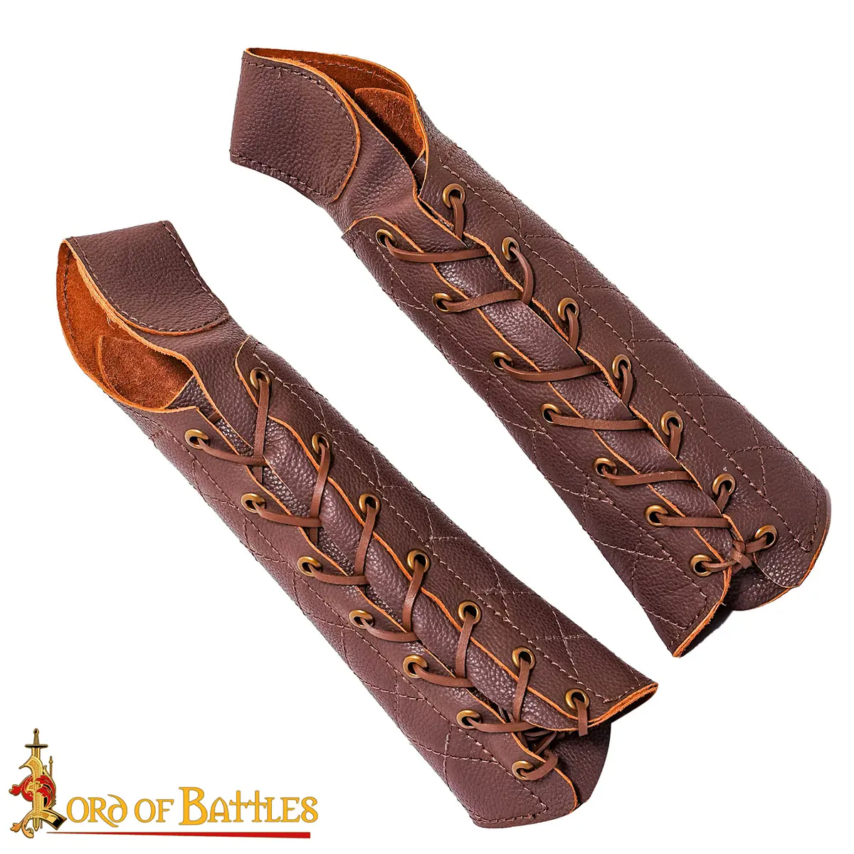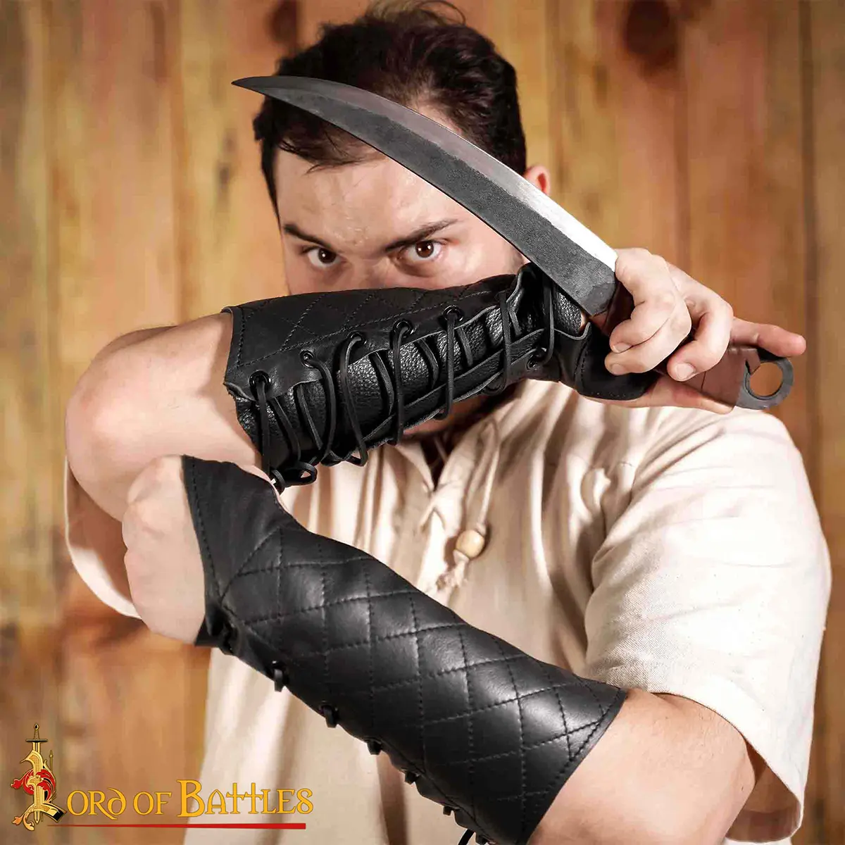 Bracers like this were widely used throughout the Middle Ages by archers to prevent injuries from bowstrings. A Medieval Archery Bracer was an essential part of an archer’s gear, for protection without restricting full arm movement. This design follows that tradition, combining historical inspiration with practical comfort.They have a leather cord fastening system for tying the bracers as per your forearm size and is comfortable for long wear.
