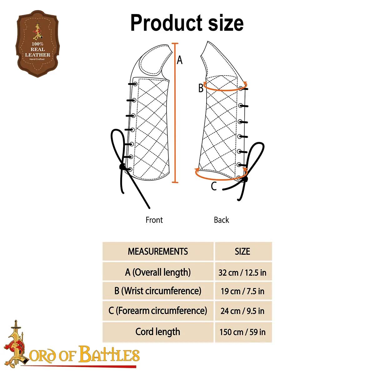 The lace-up fastening system allows the fit to be adjusted easily, ensuring stability during extended wear. Whether used as a Leather Archery Bracer for archery practice, worn as a medieval leather bracer for LARP or training, or as a medieval arm bracer for costumes and stage use, it delivers both function and visual authenticity.