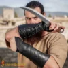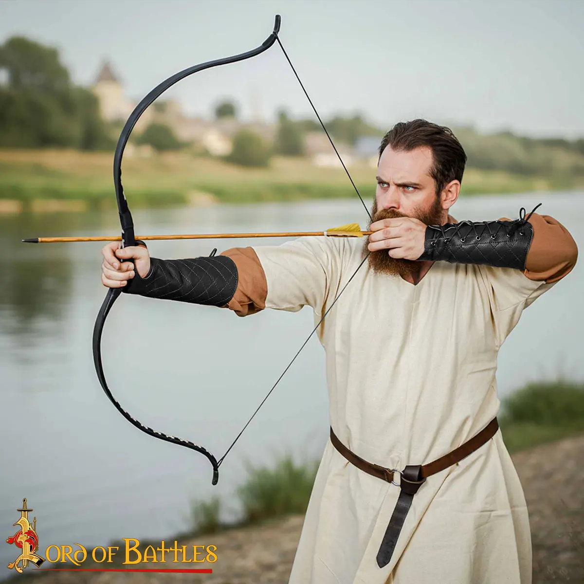 Bracers like this were widely used throughout the Middle Ages by archers to prevent injuries from bowstrings. A Medieval Archery Bracer was an essential part of an archer’s gear, for protection without restricting full arm movement. This design follows that tradition, combining historical inspiration with practical comfort. They have a leather cord fastening system for tying the bracers as per your forearm size and is comfortable for long wear.