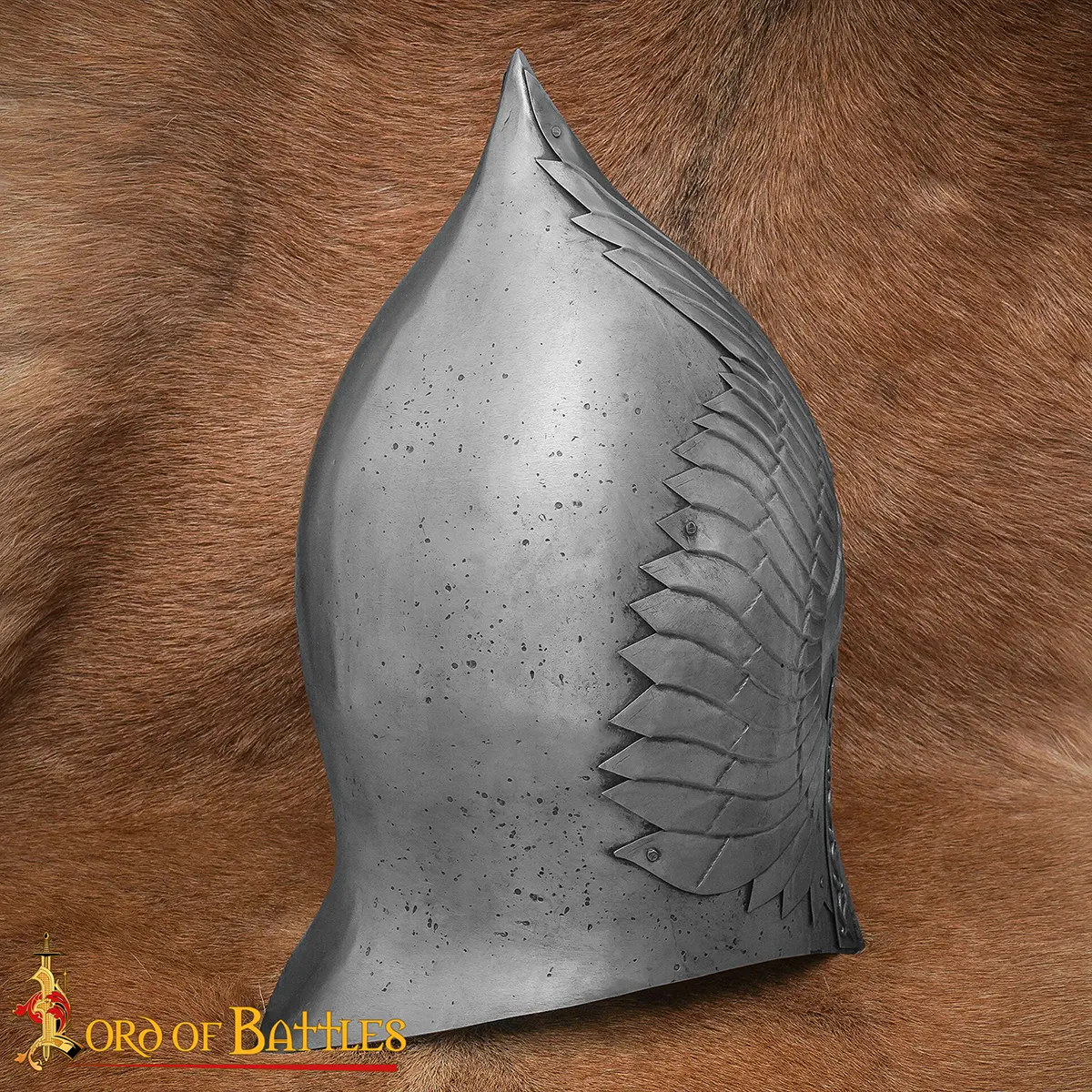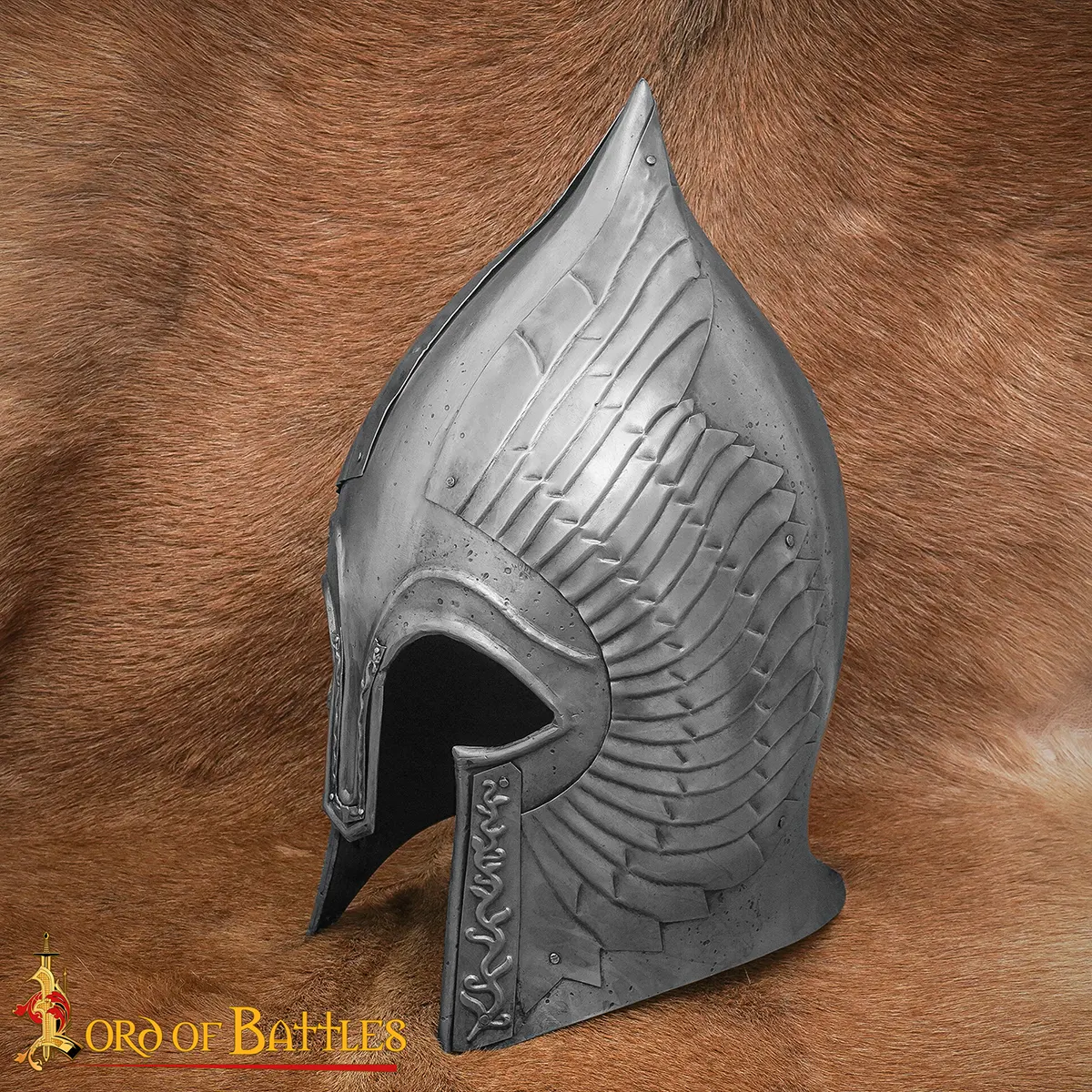 The world of epic fantasy can be experienced with the Gondorian Medieval Steel Helmet, a handcrafted replica inspired by the valiant warriors of Gondor. Designed for collectors and fantasy enthusiasts alike, this helmet blends historical medieval craftsmanship with the iconic aesthetics of Middle-Earth.