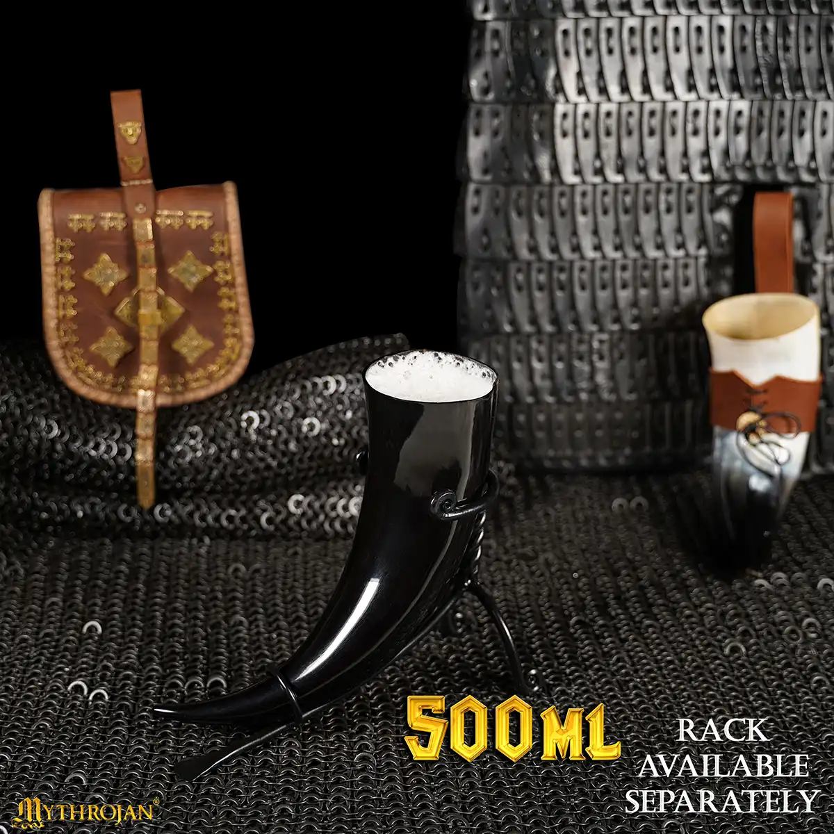 This horn is suitable for cold and room temperature beverages. It is ideal for LARP events, reenactments, themed parties, or as a decorative display piece for collectors and enthusiasts.