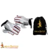 Meticulously handmade from sturdy 16-gauge MILD STEEL, these are sturdy and will last many battles. These fasten using robust leather straps and solid brass buckles. For better comfort and grip, these come attached with suede leather gloves.
