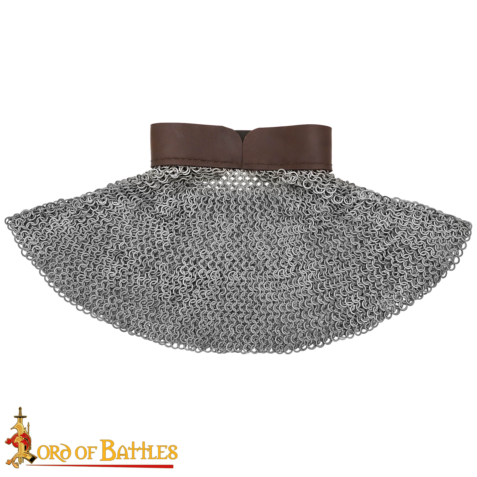 Medieval Aventail – Mild Steel Flat Rings, Round Riveted with Natural Leather Band | 9mm 17g
