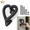Black Heart Door Knocker for Front Door 4.5 X 4 Inch Solid Forged Iron Victorian Colonial Black