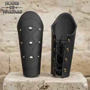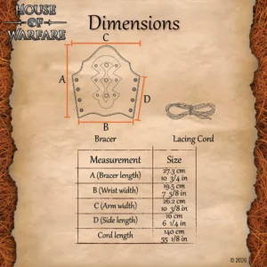 A secure lace-up system allows you to adjust the fit according to your arm size, ensuring the bracers stay firmly in place during movement. The metal eyelets and strong cord make fastening easy while providing a snug and stable fit.