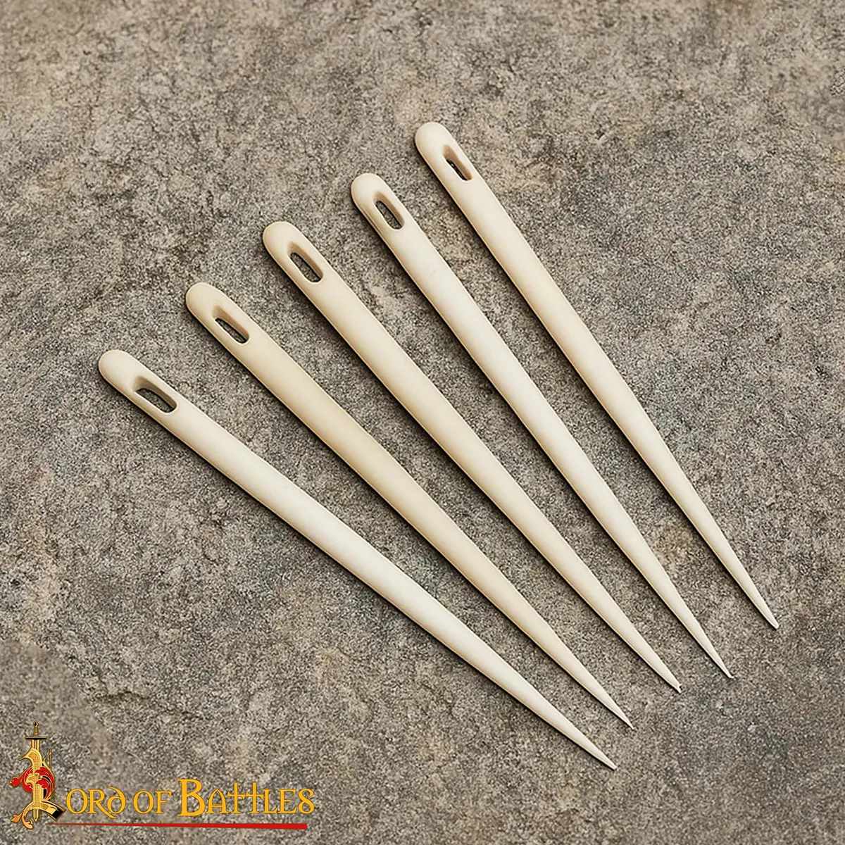 Step into the world of historical handcraft with this exquisite set of five medieval bone embroidery needles, finely carved from ethically sourced ox bone and polished to a smooth, natural finish. These timeless tools were once the go-to choice for sewing, weaving, and embroidery across various cultures—from Norse settlements to medieval households.