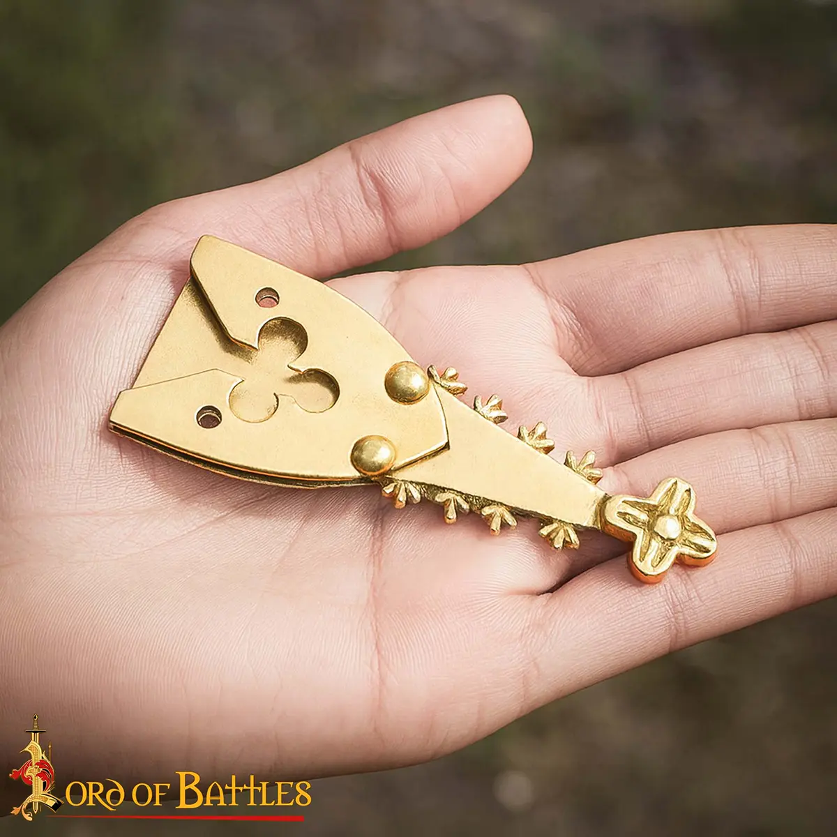 Add a touch of Renaissance elegance to your belt with this brass belt chape with a trefoil motif. Crafted from pure brass, this belt end chape was inspired by historical designs where belt chapes were both decorative as well as functional. The trefoil and quatrefoil shapes were common in medieval and Renaissance art, often symbolizing unity, growth, and faith.