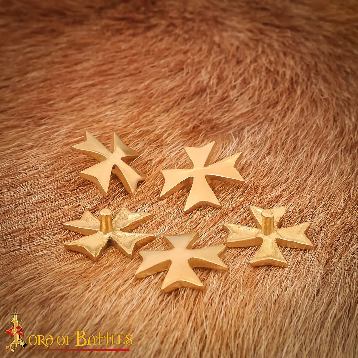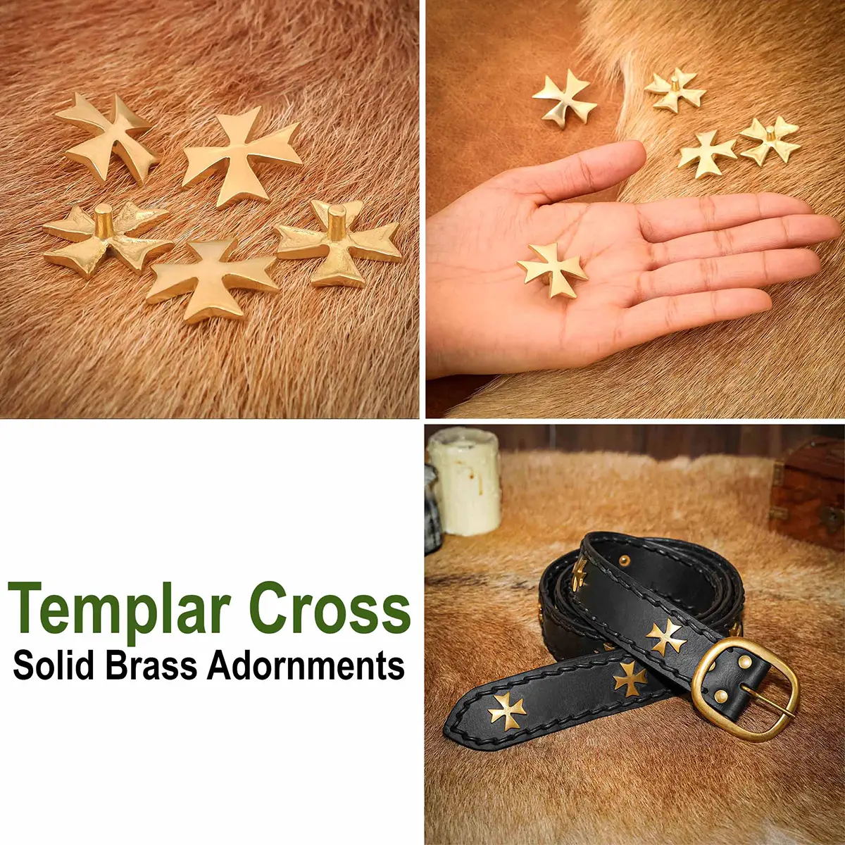 Templar Cross Pure Solid Brass Leather Mount Functional Set of 5