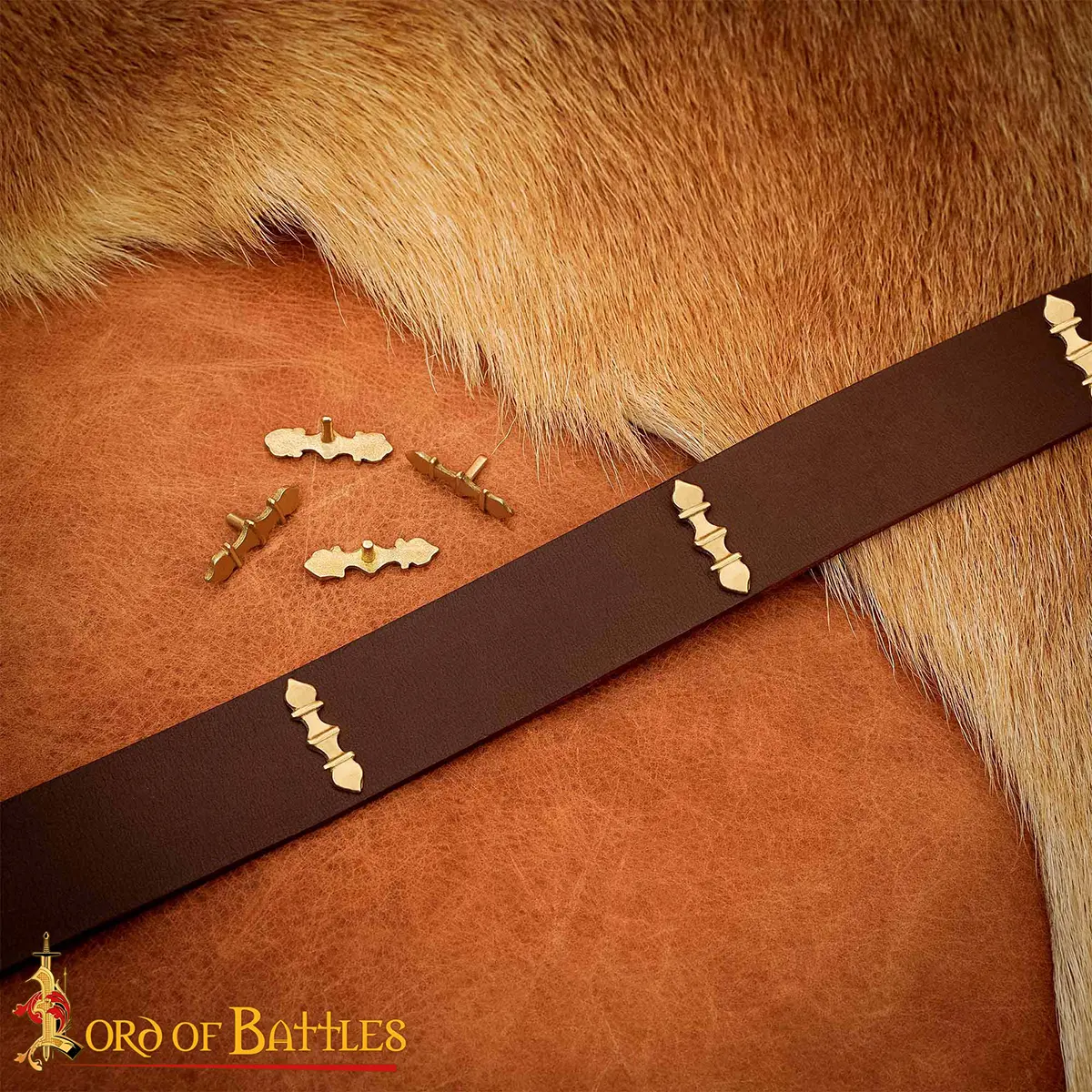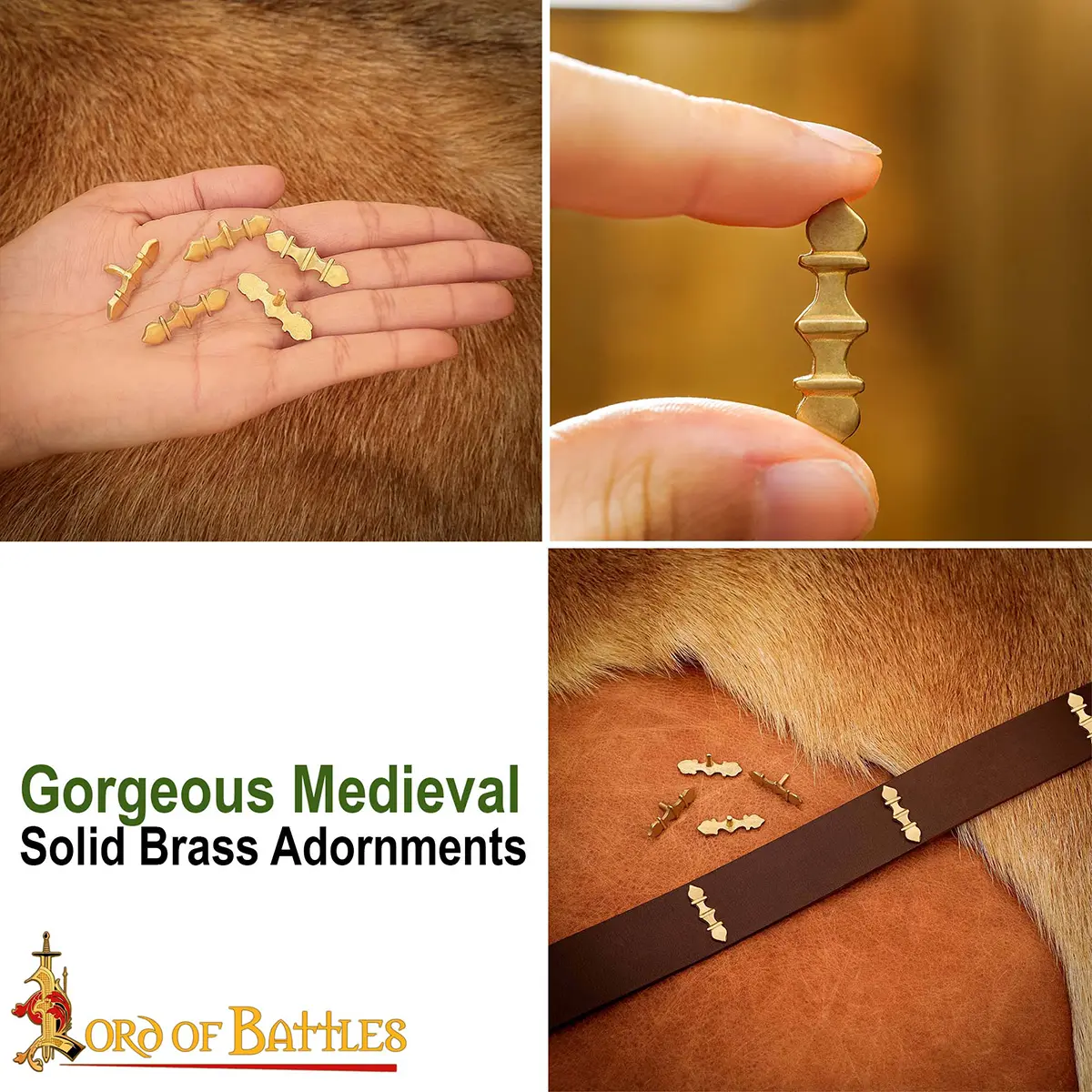 Tired of those mundane leathercrafts and feel like adding the missing flair to them? These ornate brass adornments should do the trick! Just add these to your leather Elite Belt Mounts , to make a perfect reenactment or LARP outfit!