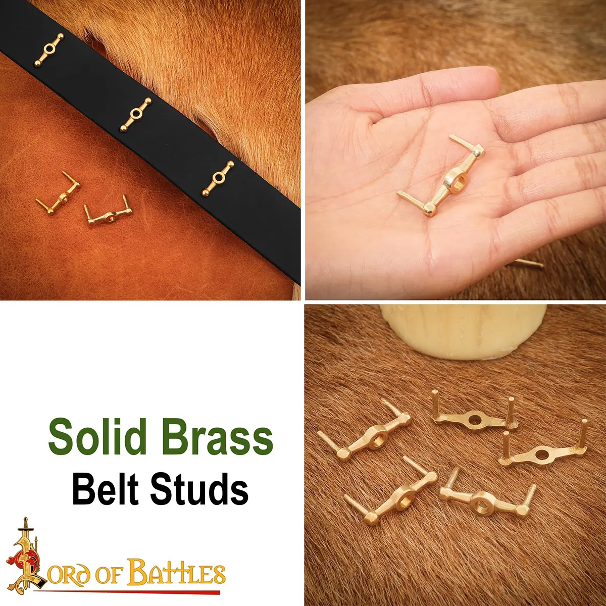 Medieval Belt Studs or Conchos Pure Solid Brass Set of 5