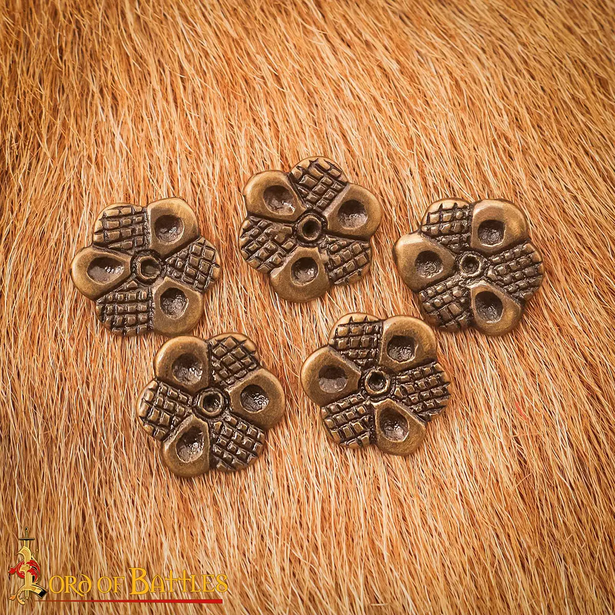Made from SOLID ANTIQUE BRASS with attention to detail, it effortlessly adds the medieval essence to any apparel or leathercraft it is adorned with. They are provided in a set of 5, each measuring approx. 1.6 cm each (washers are available separately).