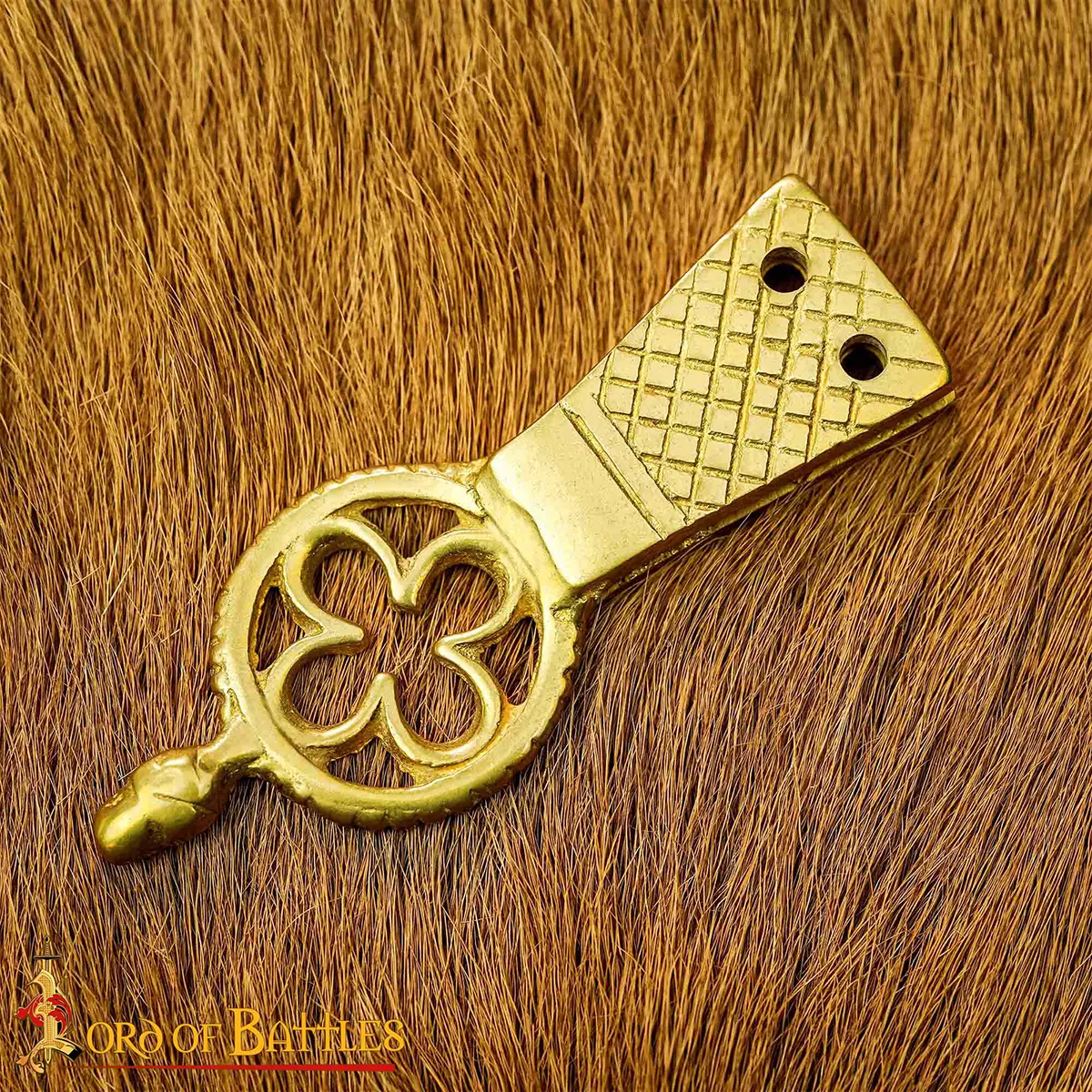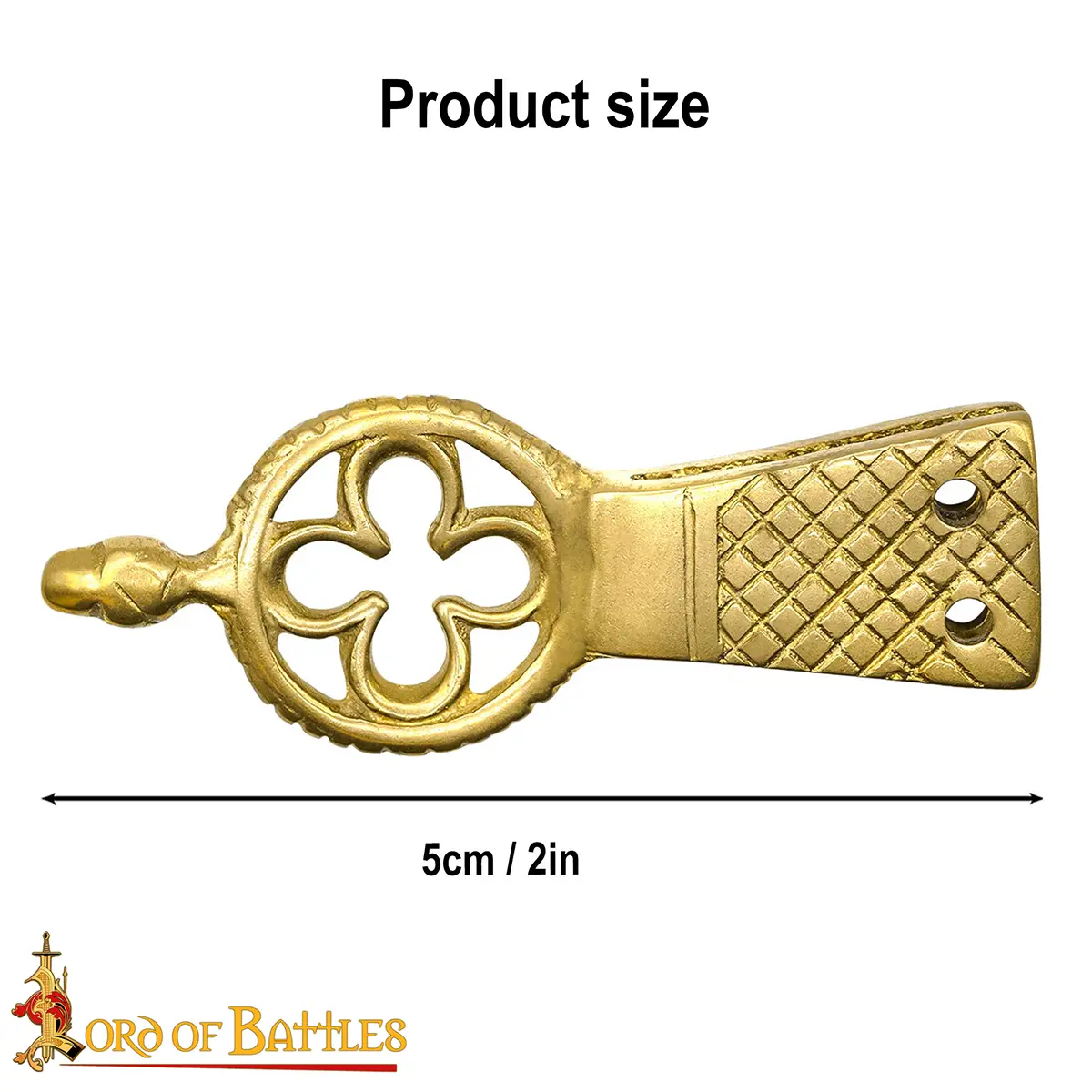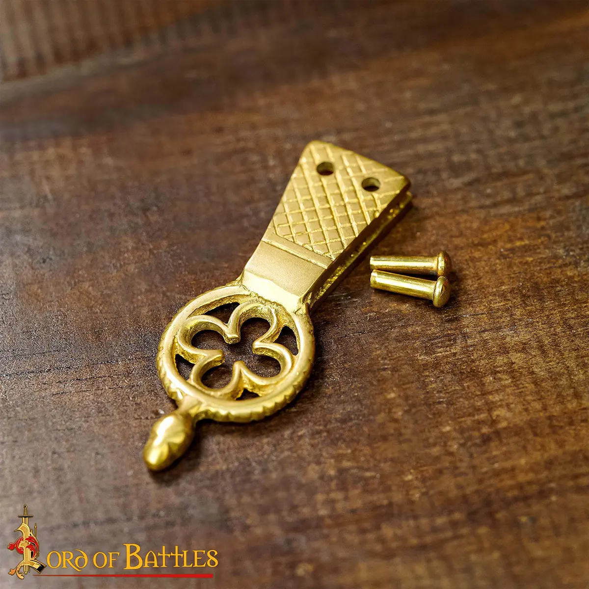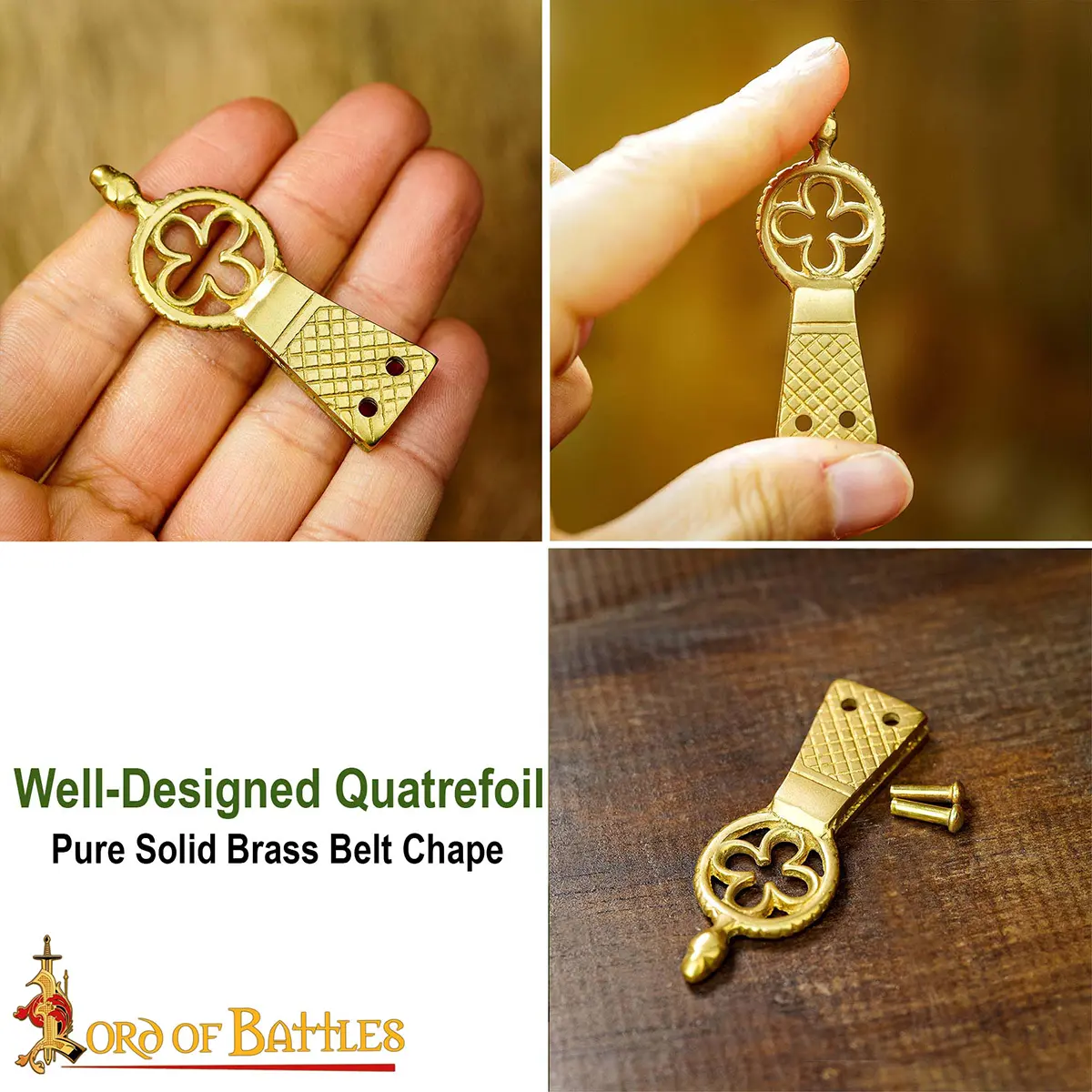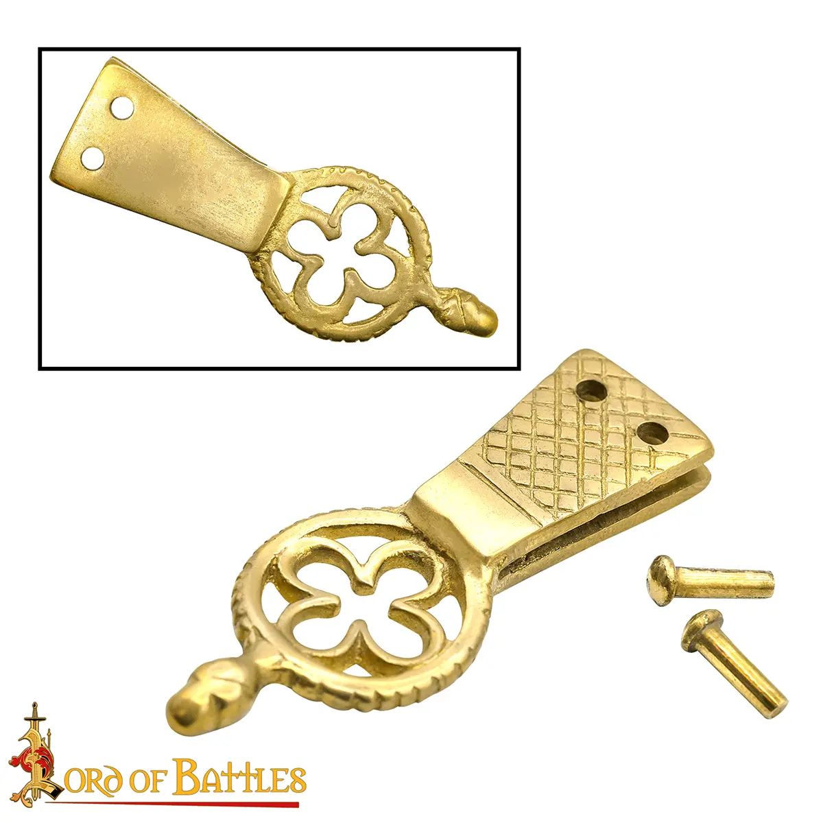 Enhance your attire with our Quatrefoil Solid Brass Belt Chape, the perfect accessory for costumes, featuring stunning design and superior quality.