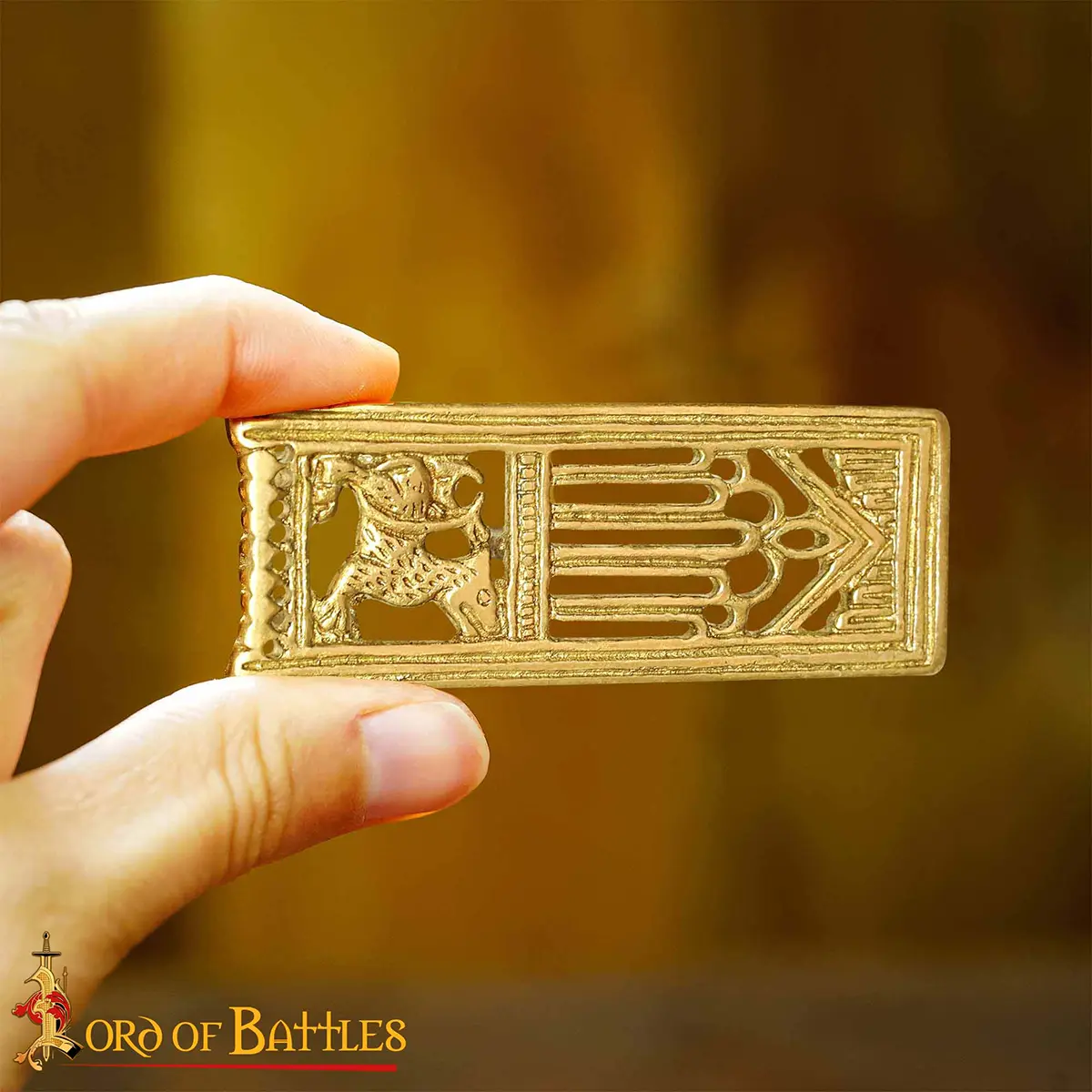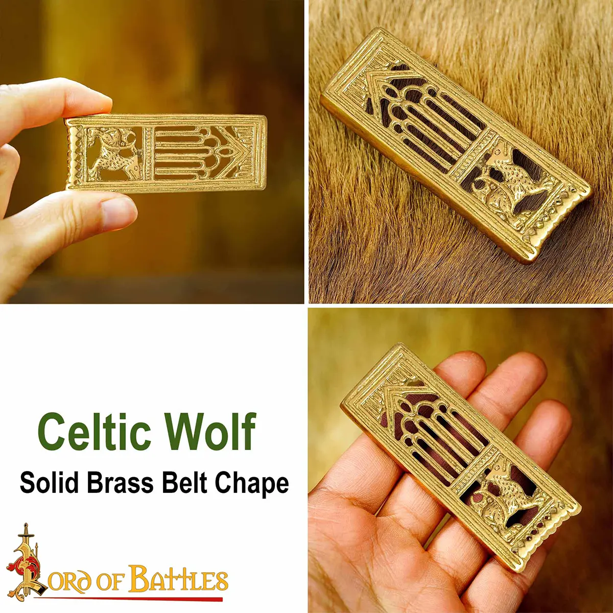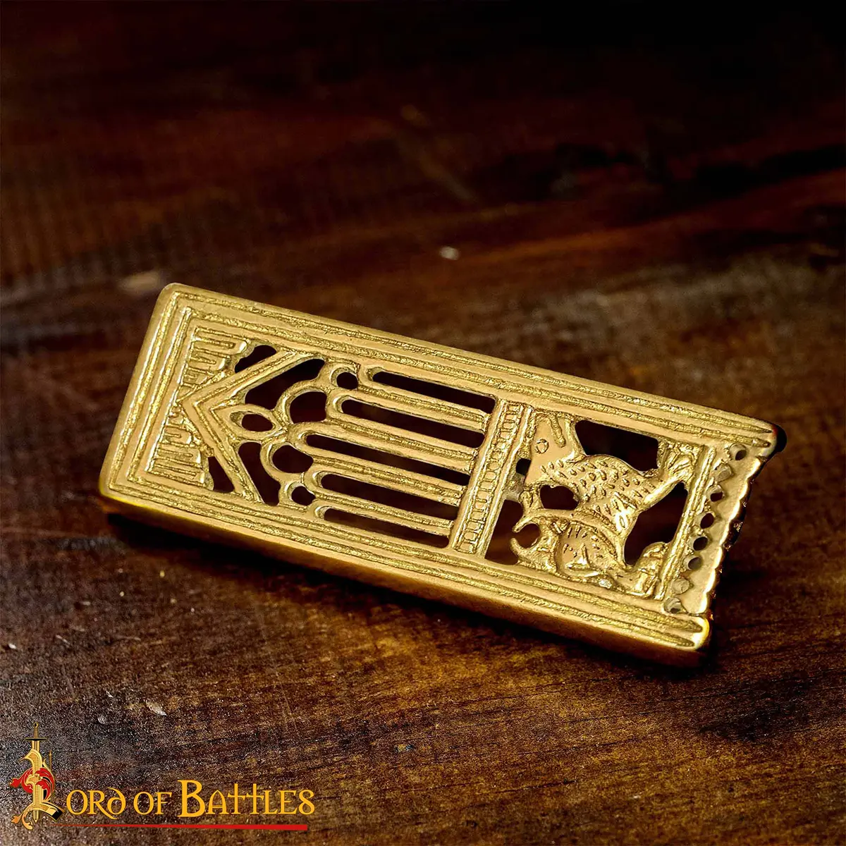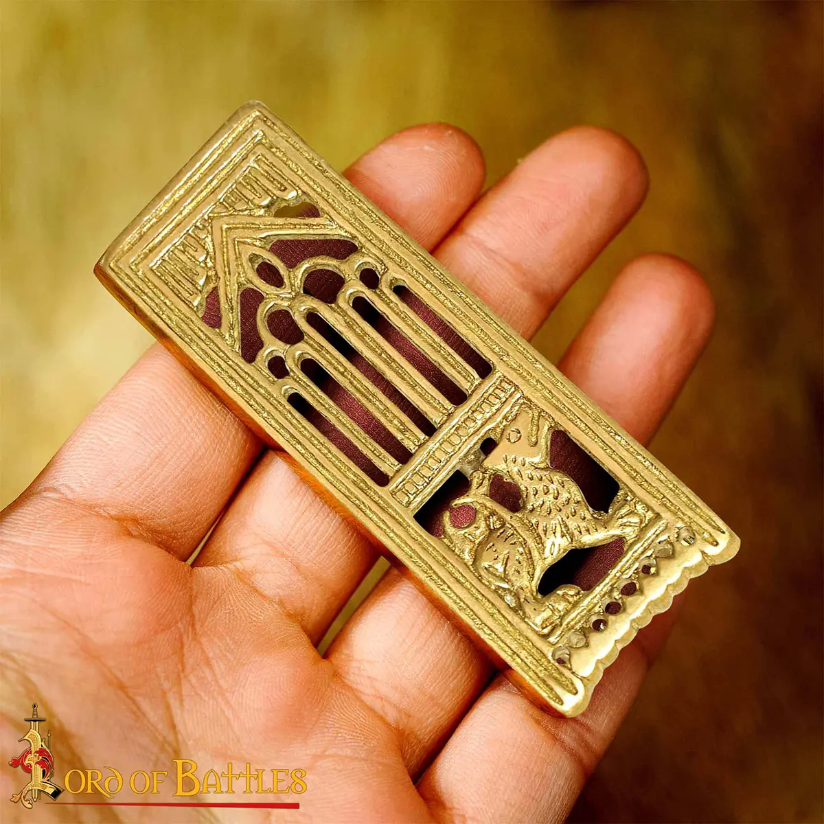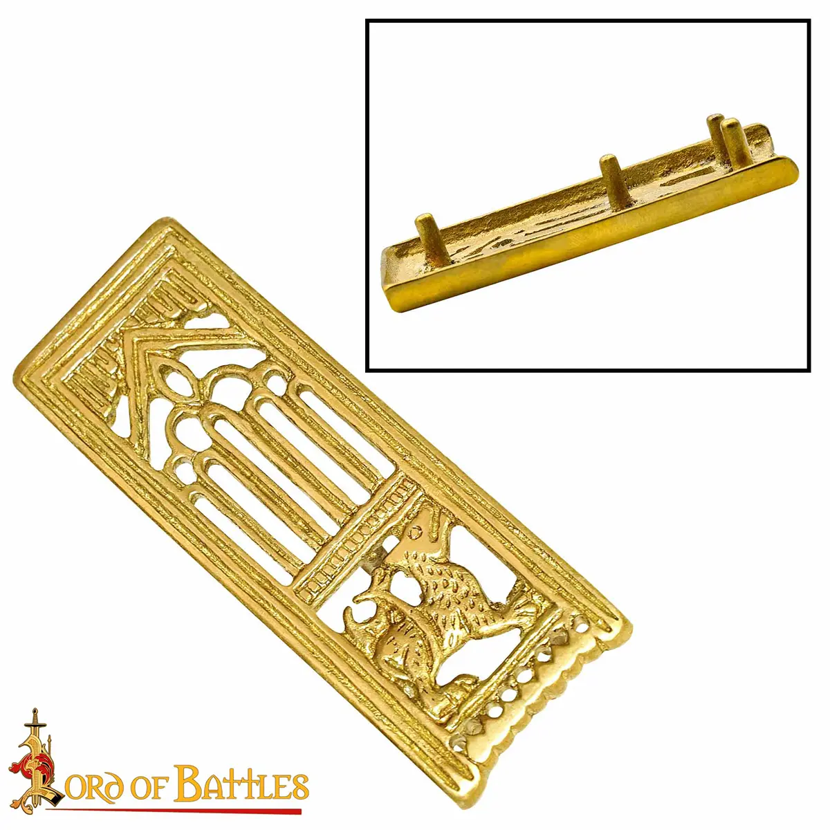 Medieval Lion Pure Solid Brass Belt End Chape Functional Belt Accessory