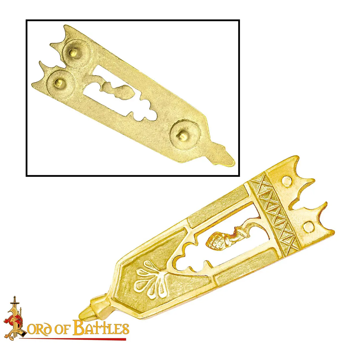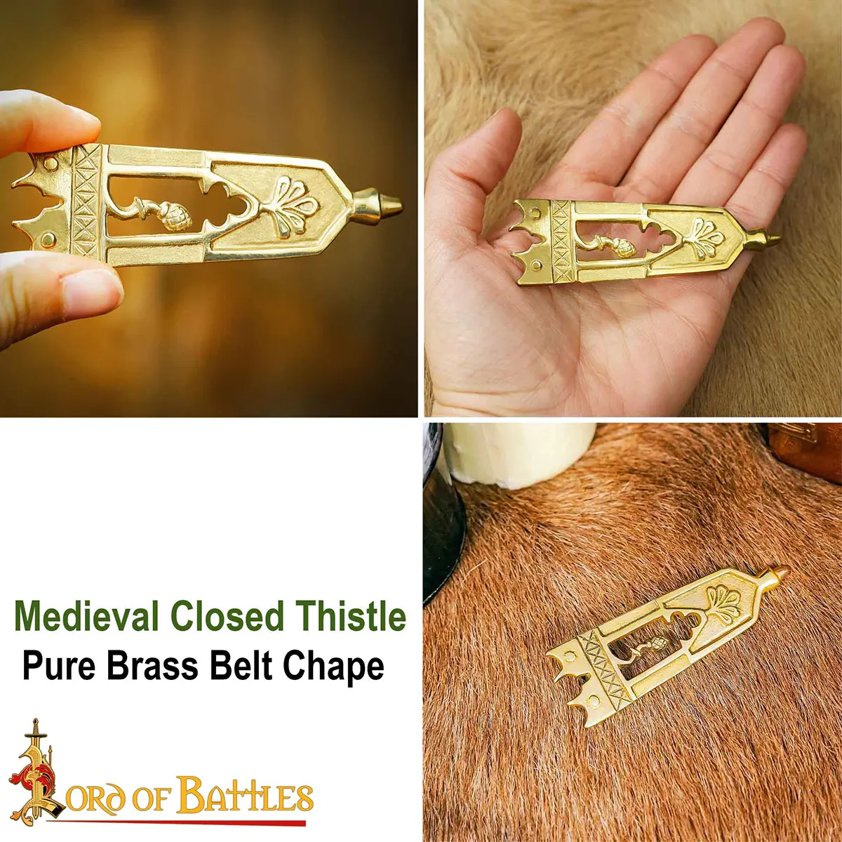 - Just as the little details leave a strong impression, our closed thistle solid brass chape with ornate medieval belt patterns will do quite the same to any unadorned leather battle belt of yours.