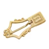 The brass lyre shaped buckle represents the elegance and craftsmanship of late medieval Europe, dating back to around 1360 to 1420. This specific design, which thrived in France and quickly spread throughout Western Europe, is not just a functional accessory but a piece of history and art that can elevate any costume. Ideal for re-enactors, these buckles were particularly fashionable among the upper class in England between 1390 and 1420, where intricate designs mirrored societal status and wealth.