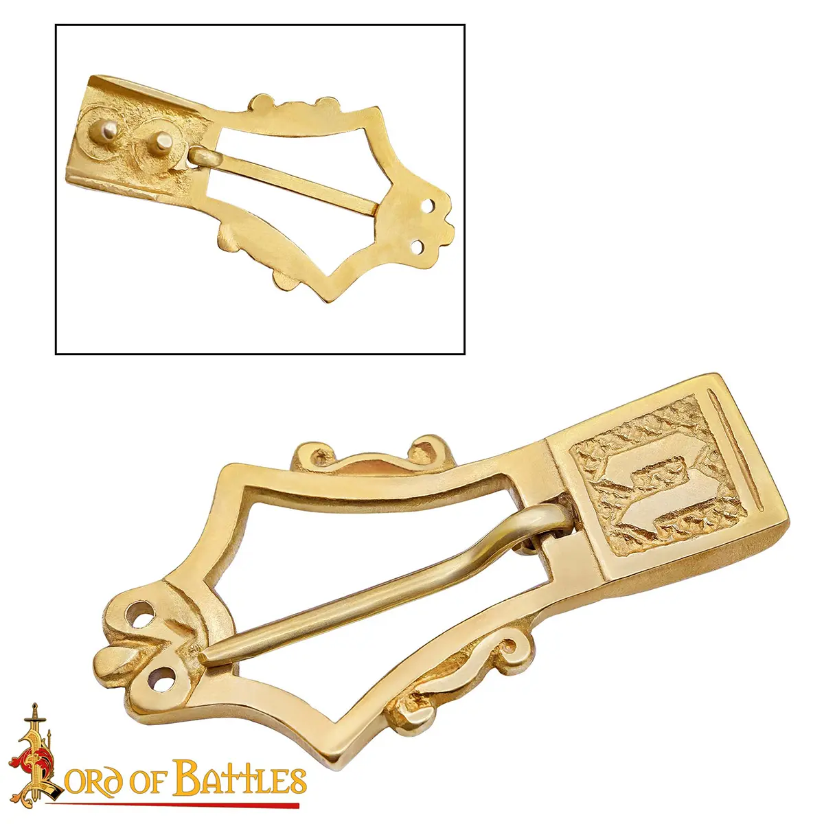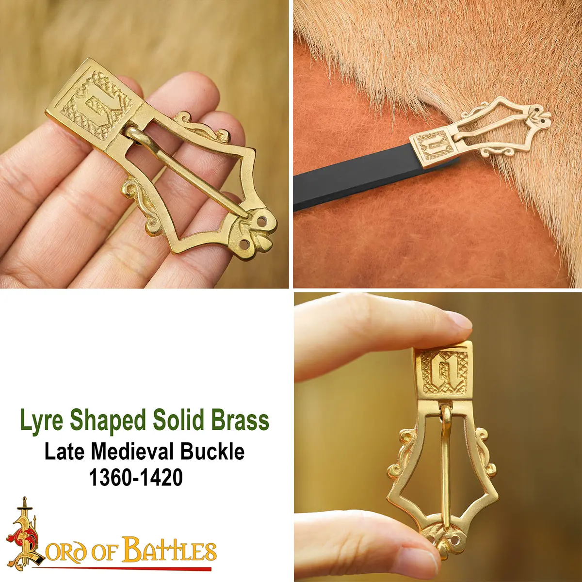 Investing in our brass lyre shaped buckles means investing in quality, history, and performance. Don’t just turn heads — be part of the story. Add these stunning buckles to your collection today and take your medieval outfit to a whole new level, ensuring you stand out at your next reenactment or LARP event. As you put on these beautiful accessories, remember that you’re not just wearing a buckle; you’re wearing a piece of the vast, colorful history of the late medieval era, ready to captivate all who lay eyes upon it.
