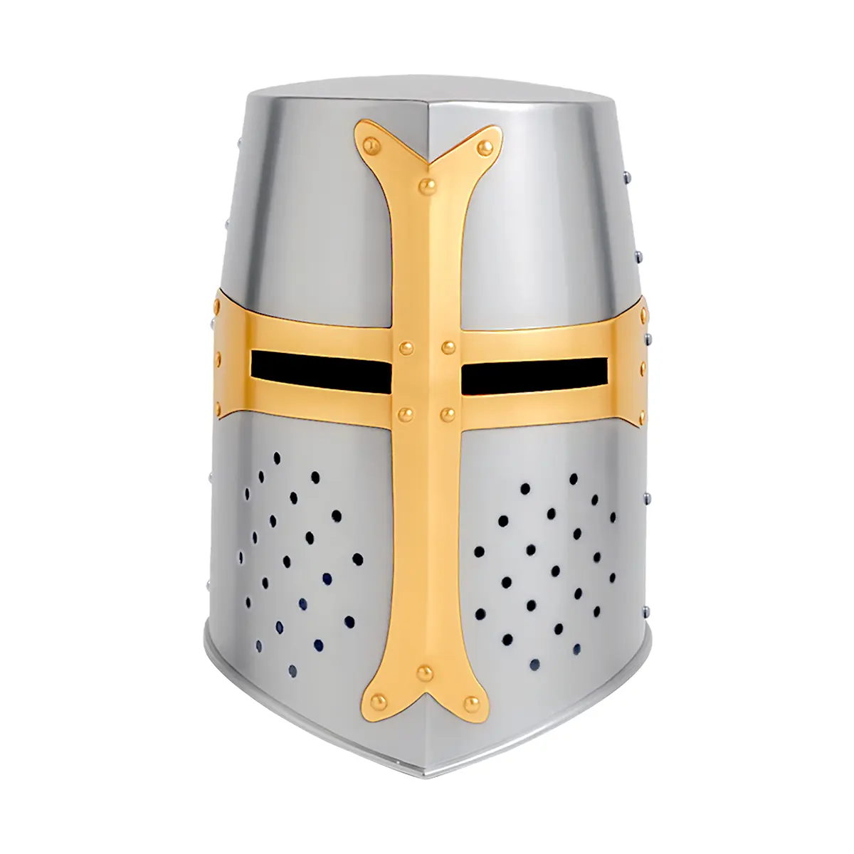 Step into the age of holy wars and knightly valor with this authentic Crusader-style Great Helmet. Crafted from 18-gauge steel and finished with a brilliant polish, this helmet calls back to the early 12th century- an era when the cross led men into battle.