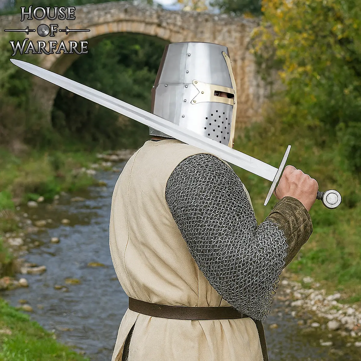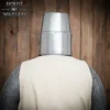 A perfect representation of medieval warfare, this helmet pairs beautifully with mail coifs, padded arming caps, or full suits of chainmail for a complete knightly ensemble.