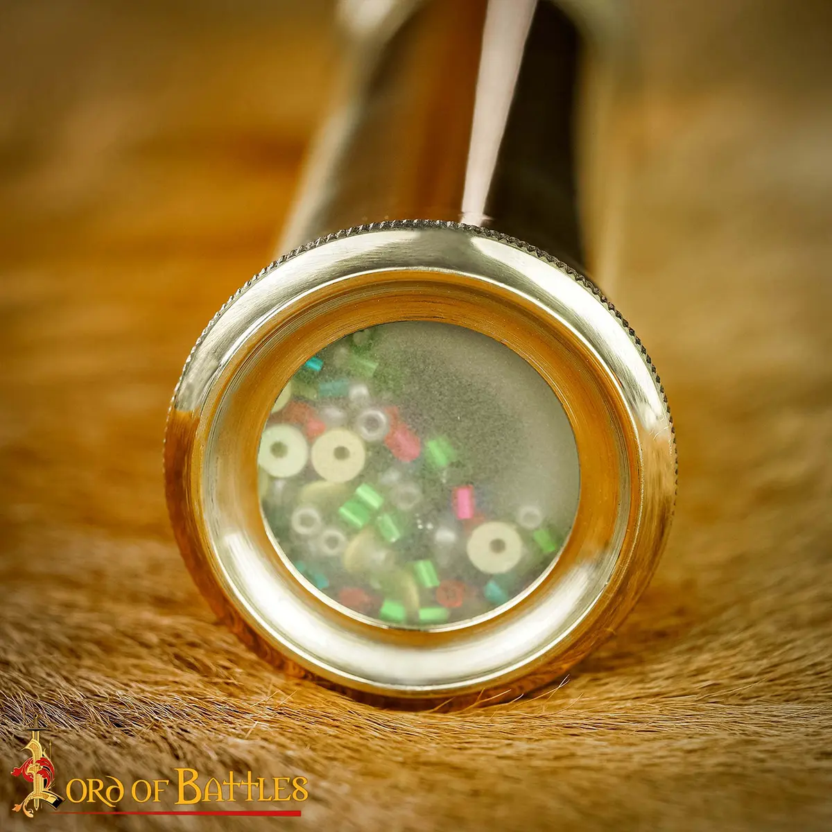 At just 15.5 cm (6.1 inches) long, it’s handy yet striking, with a smooth cylindrical body and beautiful ends. A gentle turn of the kaleidoscope’s rotating chamber reveals endless, ever-changing geometric patterns, formed by colorful beads held behind a precision lens.
