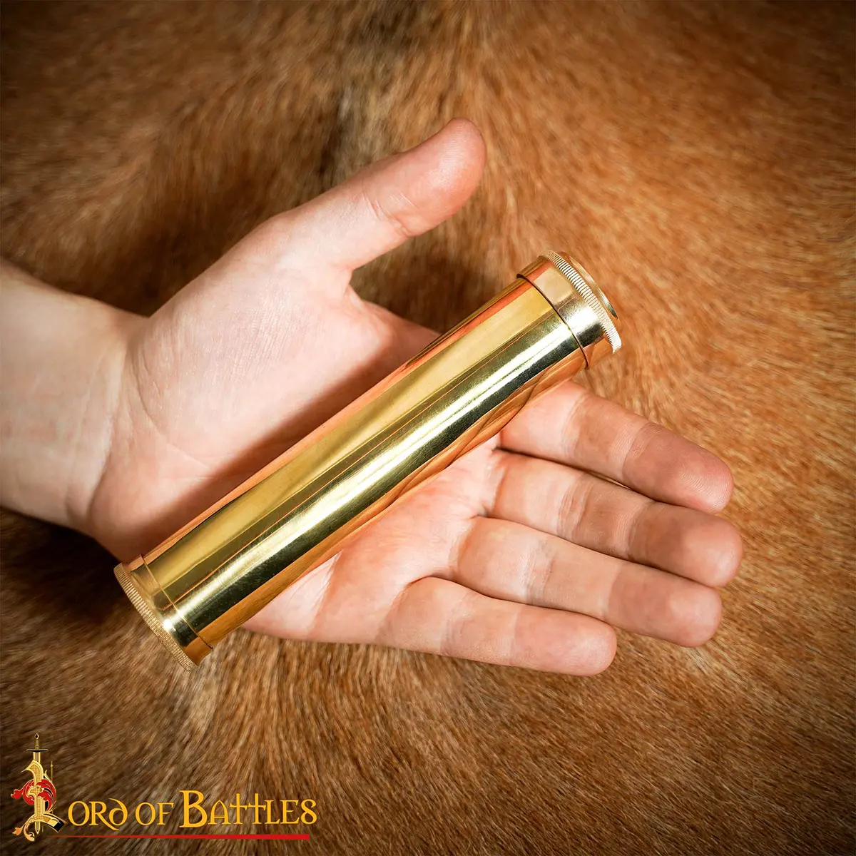 If needed, use a gentle brass polish to restore luster (avoid lens area)