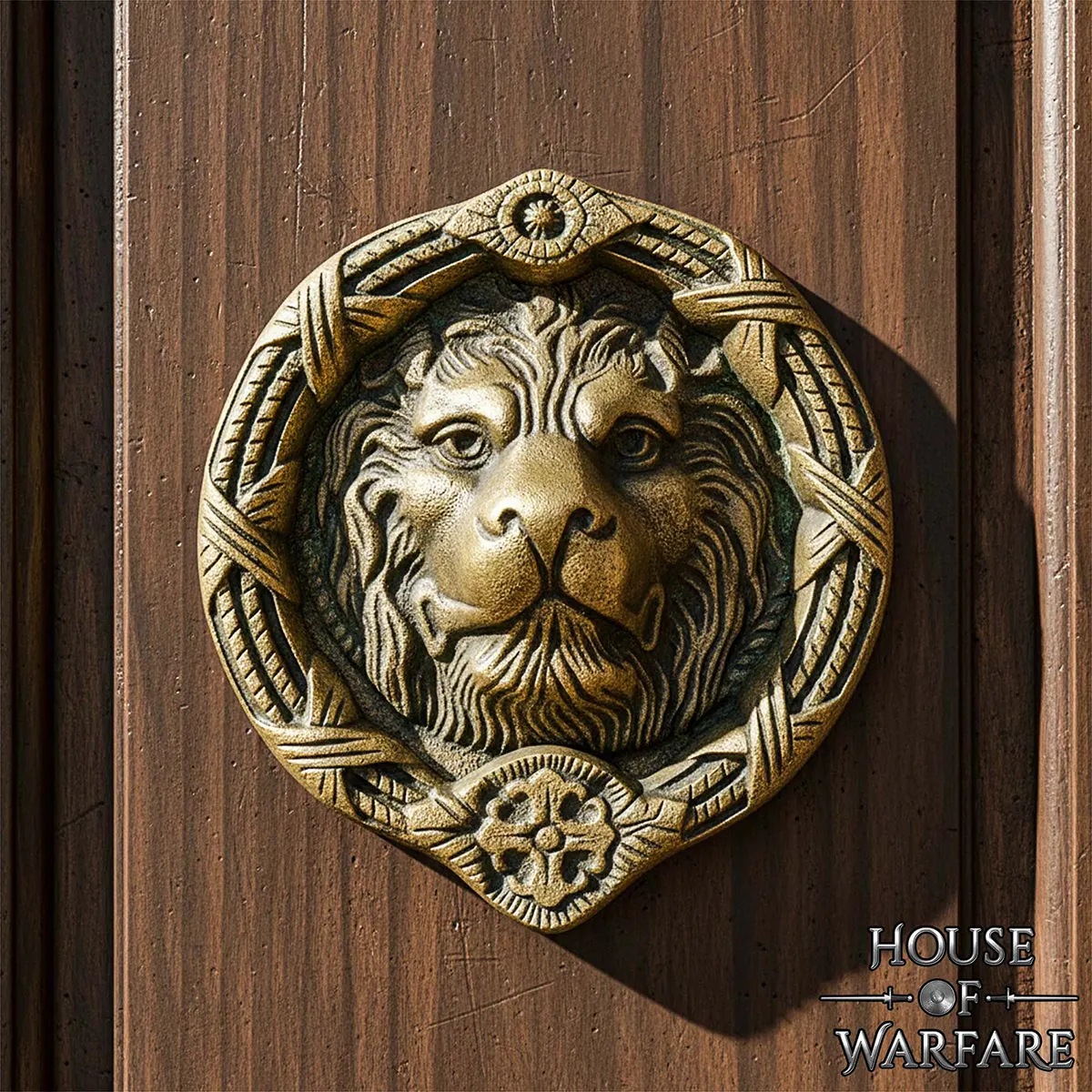 Functional Ring Knocker: The circular ring can be lifted and released against the base to create a clear, resonant knock. The weight of the ring ensures a deep, audible sound and visual balance within the lion motif