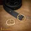 Handcrafted from pure solid brass, it has great strength and long service life. Brass was used a lot in historical times because it is naturally rust resistant and even forms a dark patina with time which gives it an old world charming look. The oval shape of the brass buckle with a center bar makes it hold your ensemble safely and gives a regal look. Designed for leather straps up to 4.5 cm (1.7 in), it stays firmly in place and does not slip under normal use. The golden surface pairs perfectly with leather and looks equally good with historical outfits or modern clothing.