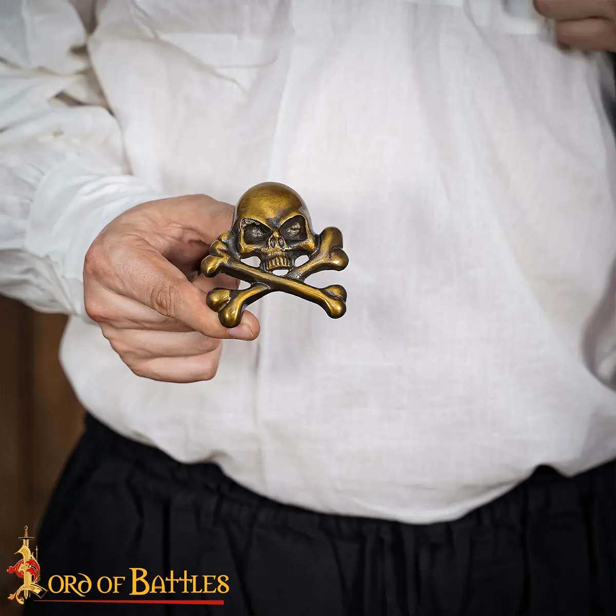 With this huge brass mount attached to your leathercraft, you could be the fierce pirate out on another adventure or ready for a victorious raid! Make sure to get this gorgeous brass mount for your next LARP or cosplay outfit!