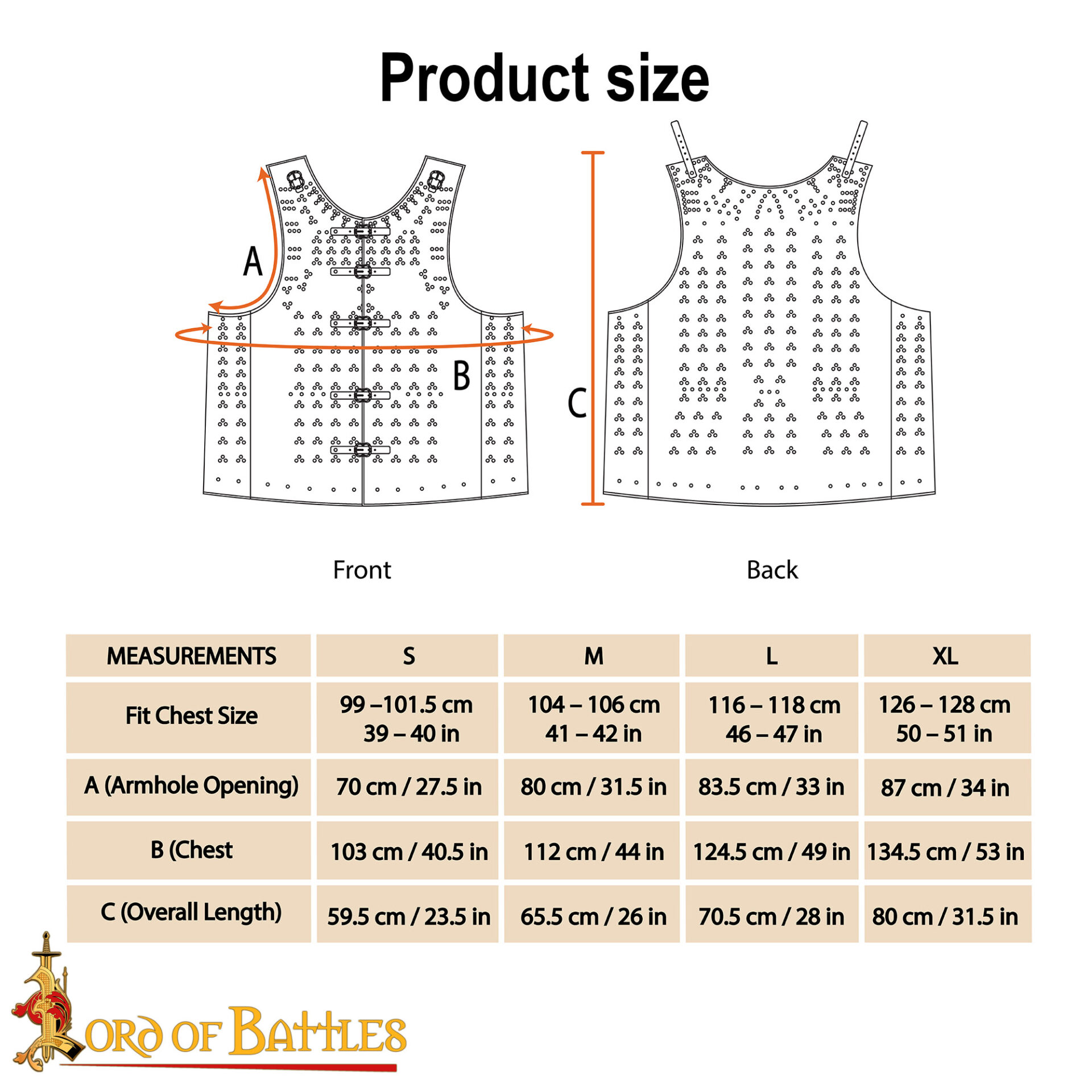 It is crafted from genuine suede leather with a thickness of approx 2 mm, with internal 18-gauge mild steel plates. Depending on size, the plate number varies from 149 and 185 individually riveted plates. These plates are arranged in a true period pattern so that the weight distributes evenly giving freedom of movement.