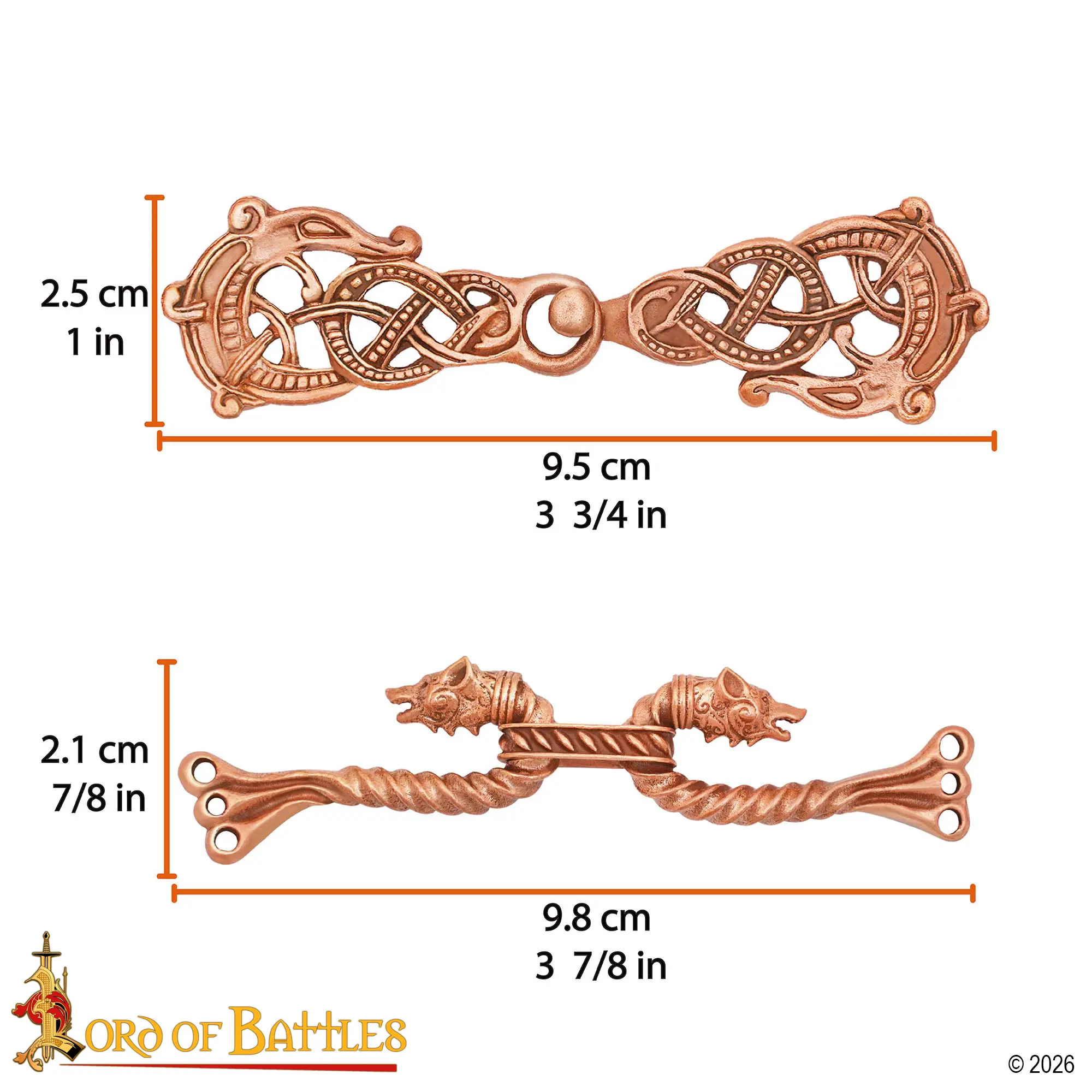 This Celtic Brooch set includes two bronze cloak fasteners sold together, inspired by early Viking and Celtic animal-art traditions. They show the artistic styles which were seen in Northern Europe during the Viking Age, from the 9th to 12th centuries.