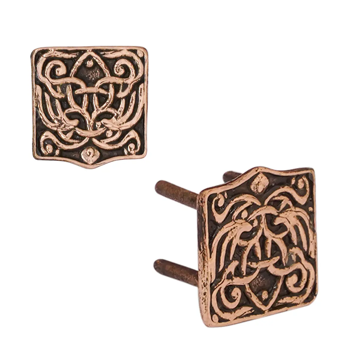 Each mount showcases interwoven knotwork, echoing the mythical and symbolic world of Viking culture—endless patterns that symbolized strength, unity, and the eternal cycle. These mounts aren’t just ornamental; they’re historic reflections of the warrior’s presence, found on belts, sword scabbards, and pouches across Norse territories.