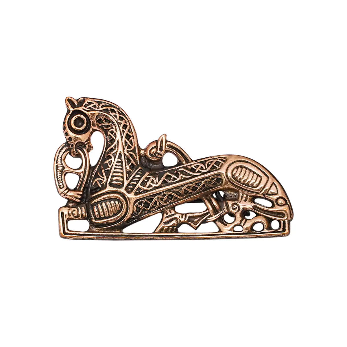 Bronze brooches like this were more than functional fasteners in the Viking Age—they served as wearable statements of craftsmanship, identity, and wealth. The horse motif appears in saga art and burial contexts, embodying endurance, status, and a bond with the natural world