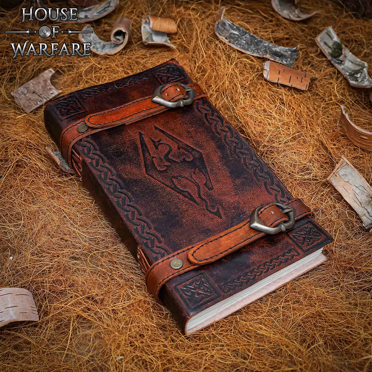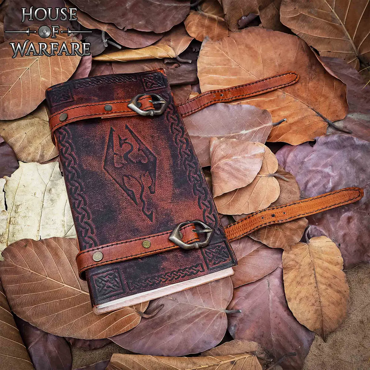 Each Celtic Dragon Leather Journal is made from premium quality genuine leather, hand-dyed a warm brown tone that will develop a unique patina over time. The dual leather straps and brass buckles not only secure your pages but also create a striking vintage look that stands out in any setting.