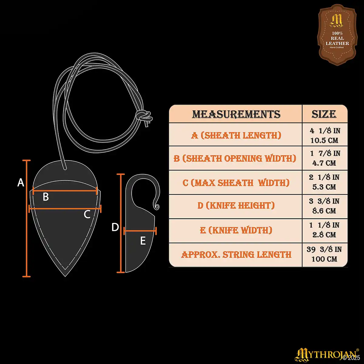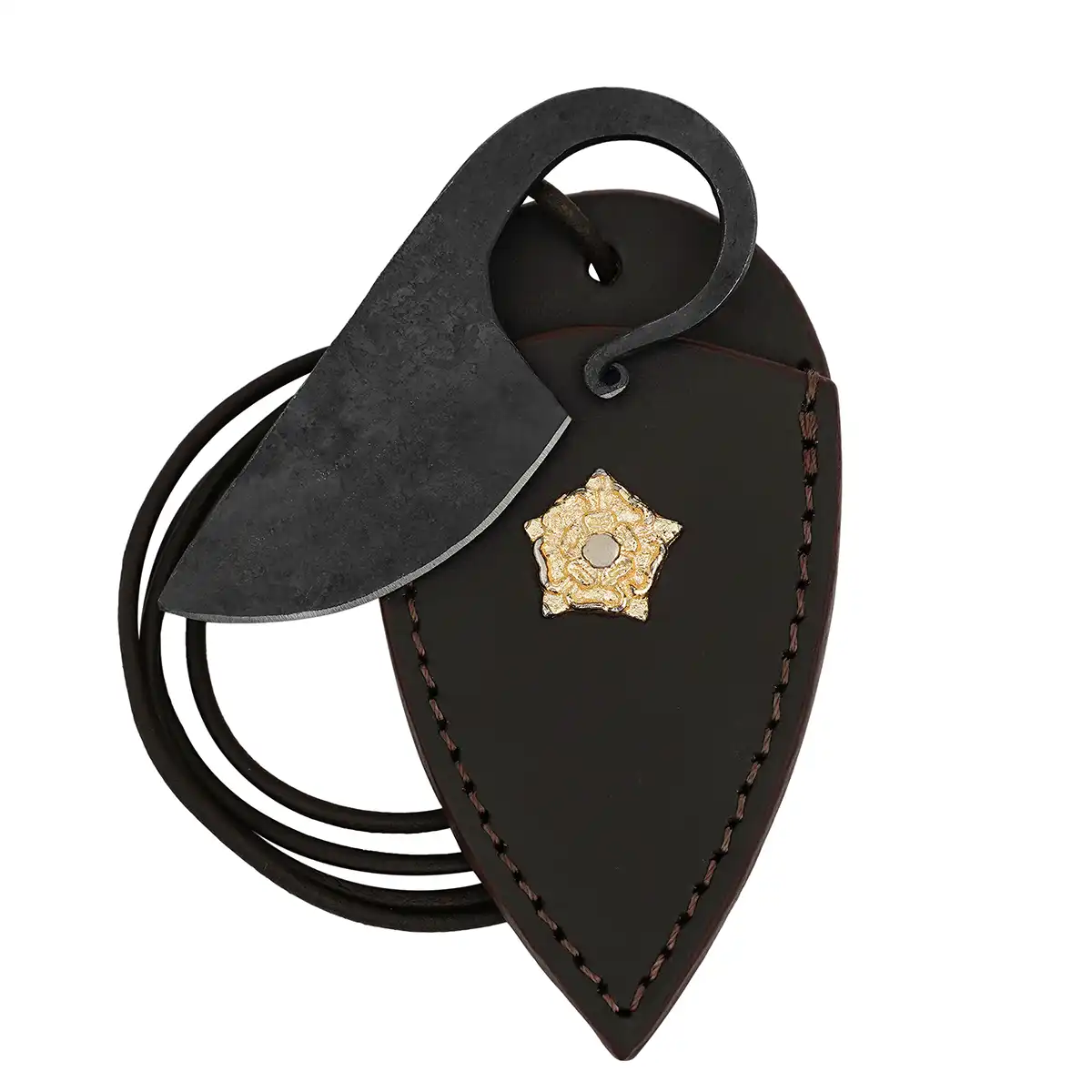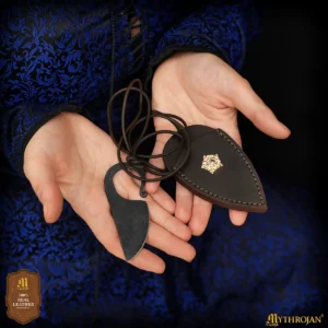 The rustic surface finish and curled tang handle show the elegance of early medieval cutlery, making each knife a living piece of history. What truly sets it apart is its regal leather sheath, hand-stitched from genuine leather with a raised lion emblem, a symbol of courage and honor. Worn proudly on the belt or worn in the neck from its cord, this knife becomes part of your identity, not just your kit.