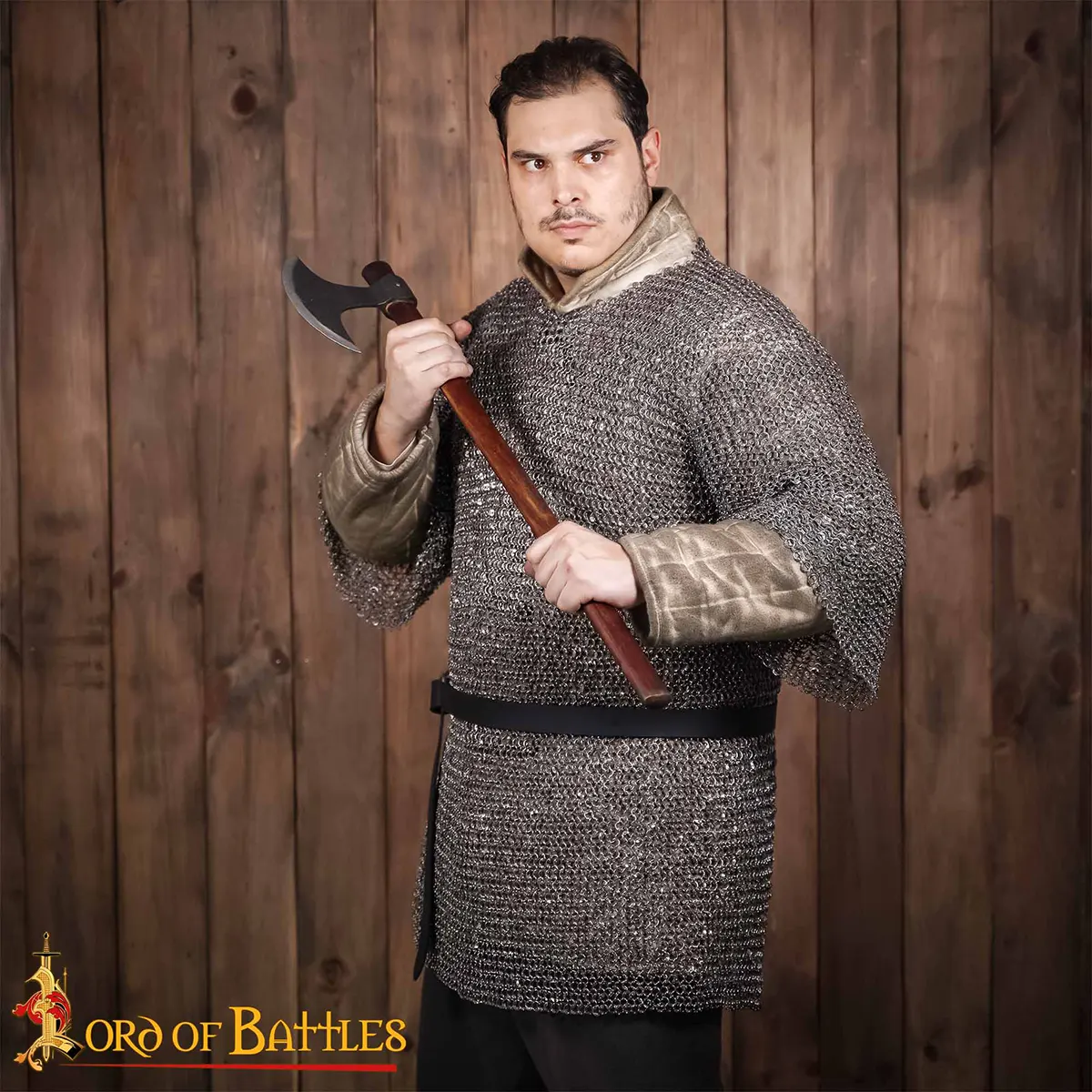 Because each piece is assembled entirely by hand using authentic methods, you may occasionally notice a rivet that sits slightly proud or feels subtly looser than others. These minor variations are a natural hallmark of genuine, artisan-made mail, just as they were in the Middle Ages and show the human care invested in every garment. Should adjustment ever be needed, it can be easily done using basic pliers and a spare ring, preserving both integrity and historical authenticity.